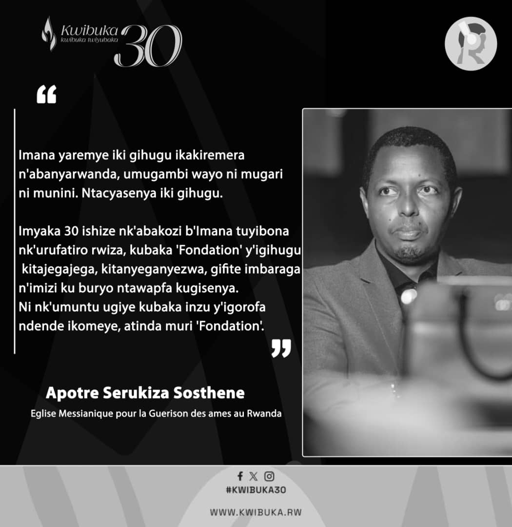 Umushumba Mukuru w'Itorero rya Eglise Messianique Pour la Guerison des ames au Rwanda, Apotre Serukiza Sosthene, yifatanije n'abanyarwanda mu bihe bikomeye byo kwibuka ku nshuro ya 30 Jenoside yakorewe Abatutsi, atanga ubutumwa bugaruka ku byagezweho mu myaka 30 ishize, ashimira ubuyobozi bwiza bw'u Rwanda.