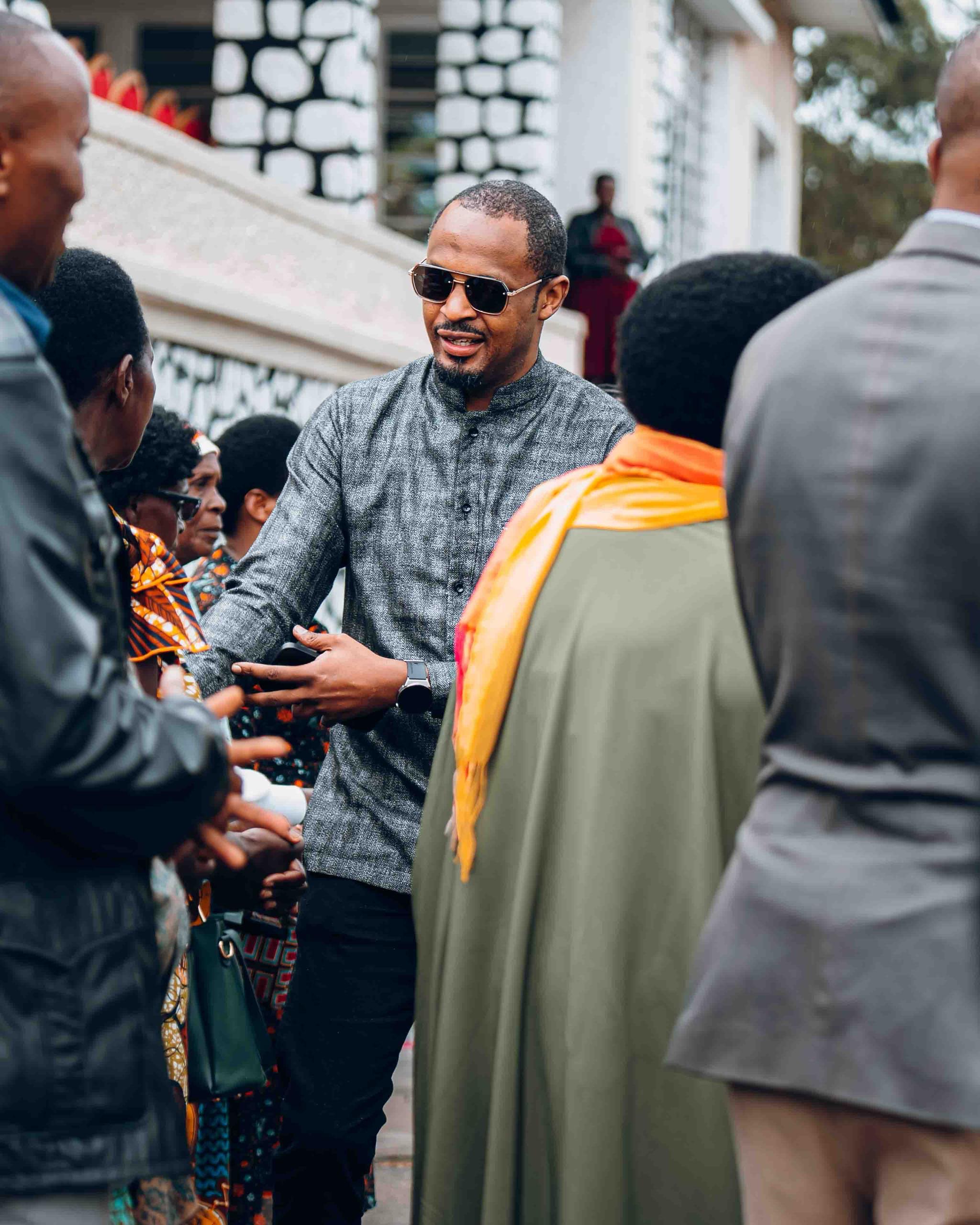 Kenny Sol aramukanya na bamwe mu baturage bo mu Karere ka Nyanza mu Majyepfo y'u Rwanda