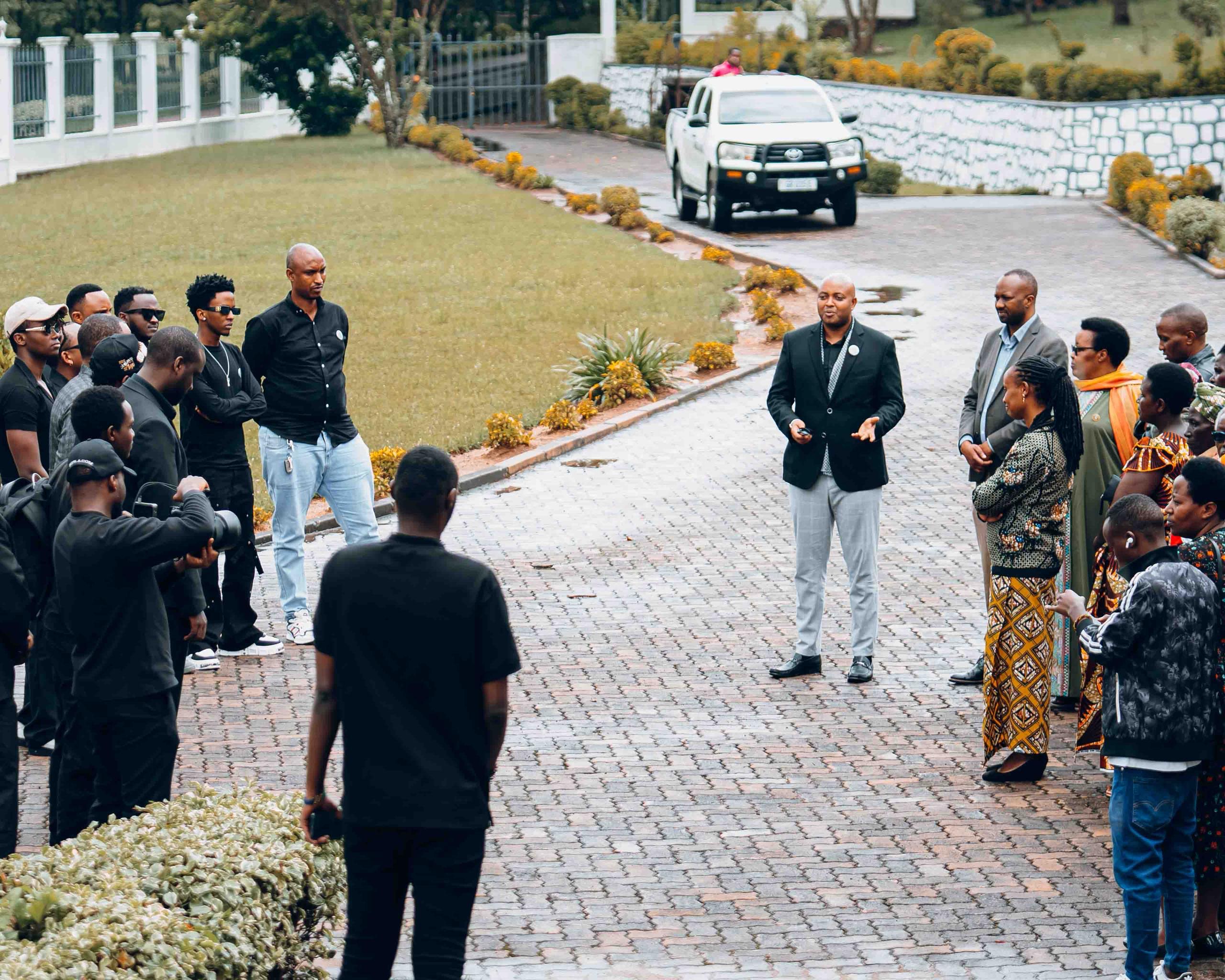 Bruce Melodie yasuye Urwibutso rwa Jenoside rw'Akarere Nyanza ari kumwe n'abagize ikipe ya UGB yashoyemo imari ndetse na Kenny Mugarura uyobora 1:55 AM