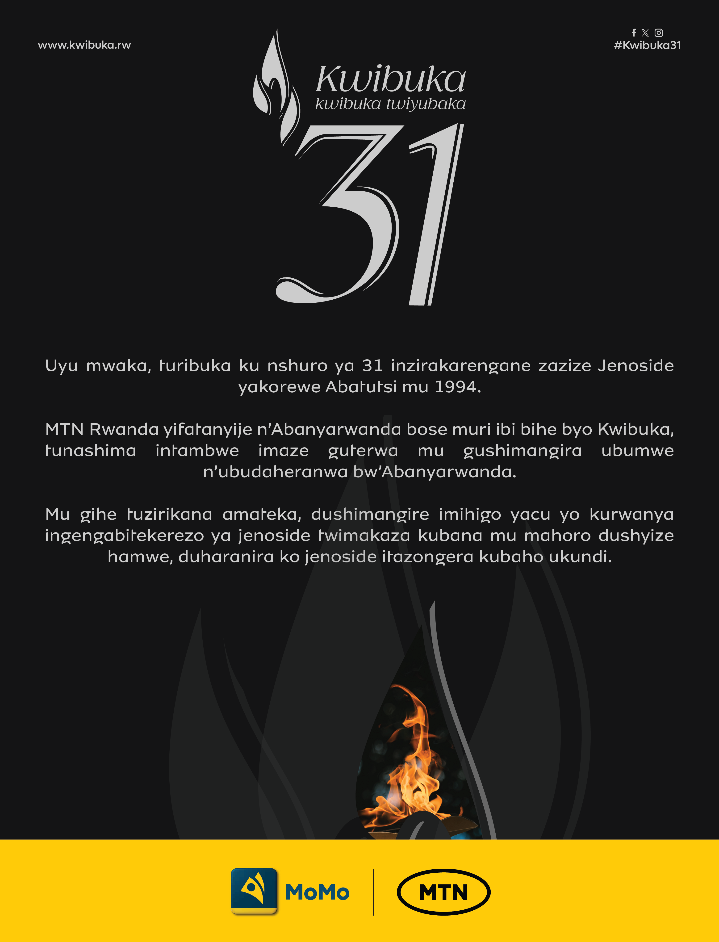 Ubutumwa bwa MTN bwashyizwe hanze kuri uyu wa Mbere tariki 07 Mata 2025 buravuga ngo "MTN Rwanda yifatanyije n'Abanyarwanda bose muri ibi