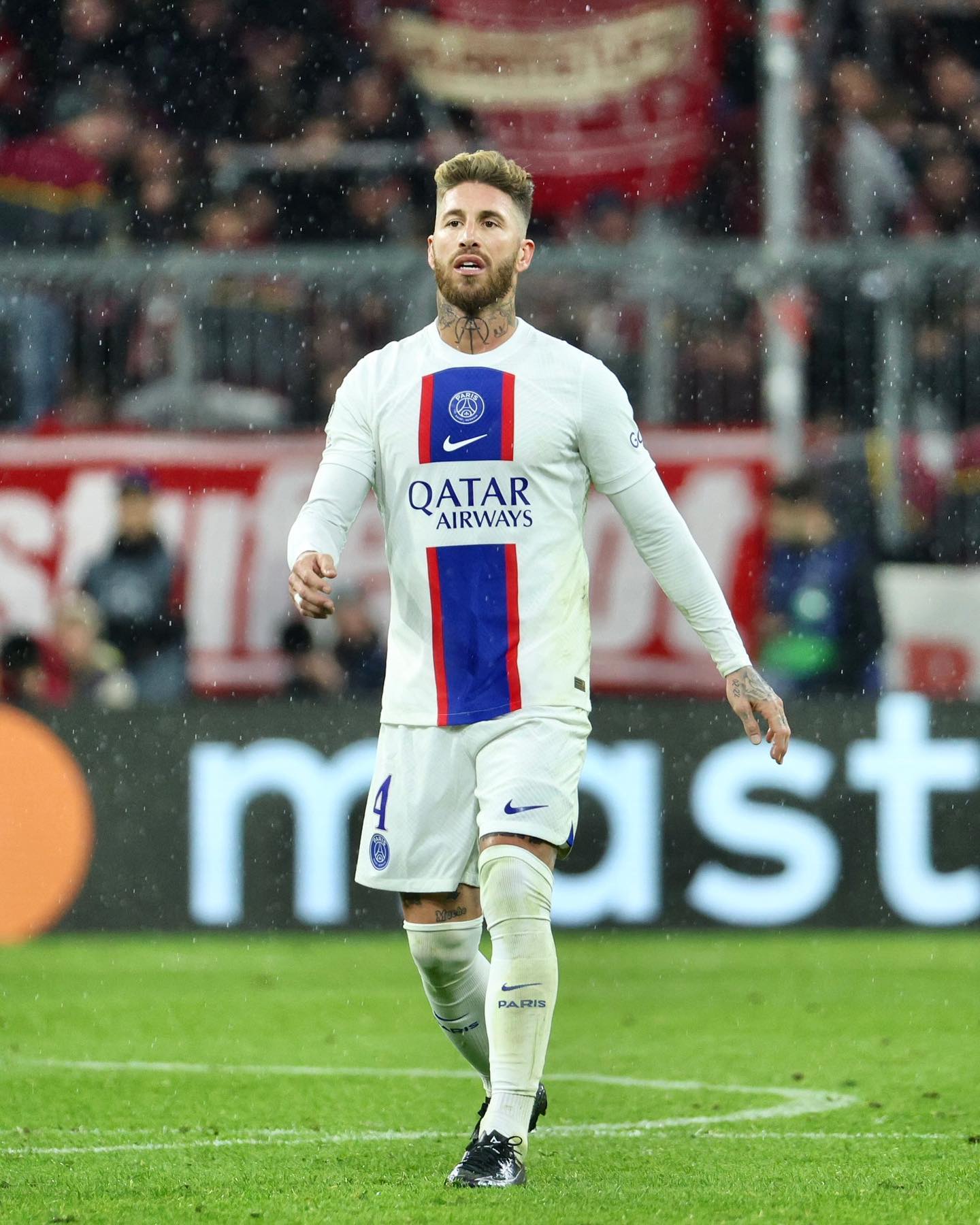 25' Abakinnyi bakina ku ruhande rw'iburyo rwa Bayern Munich bongeye kugerageza kwirukankana imipira bagana mu rubuga rw'amahina rwa Paris Saint-Germain ariko Sergio Ramos akayikuraho neza