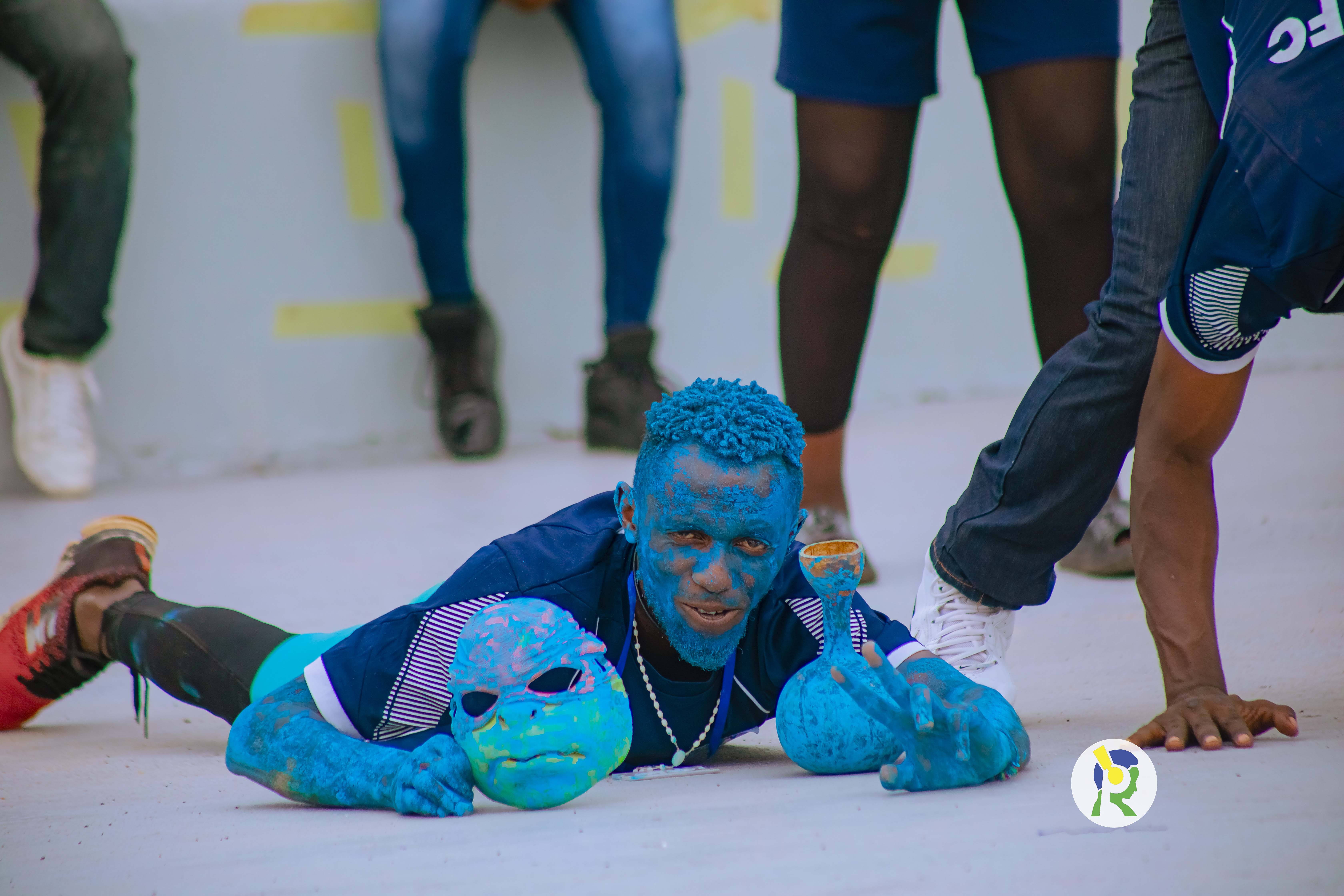 77" umunyezamu Kwizera Janvier aryamye hasi bigaragara ko yagize ikibazo ubwo yarwanaga no gufata umupira.