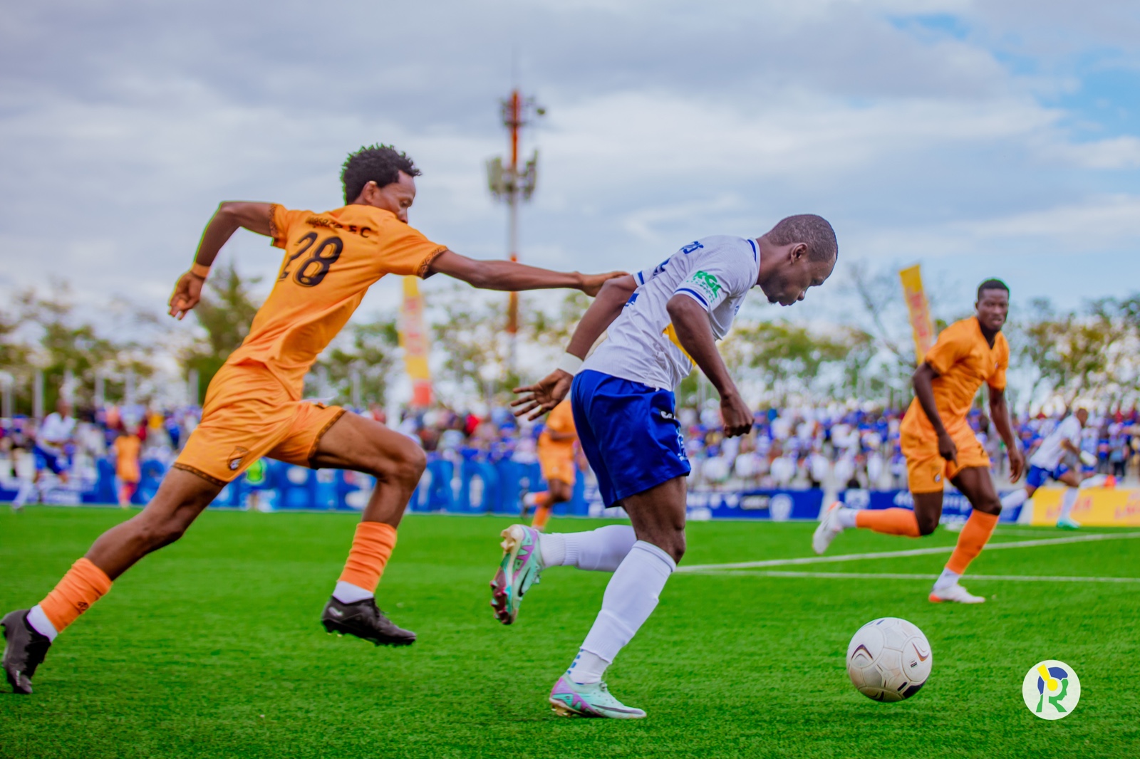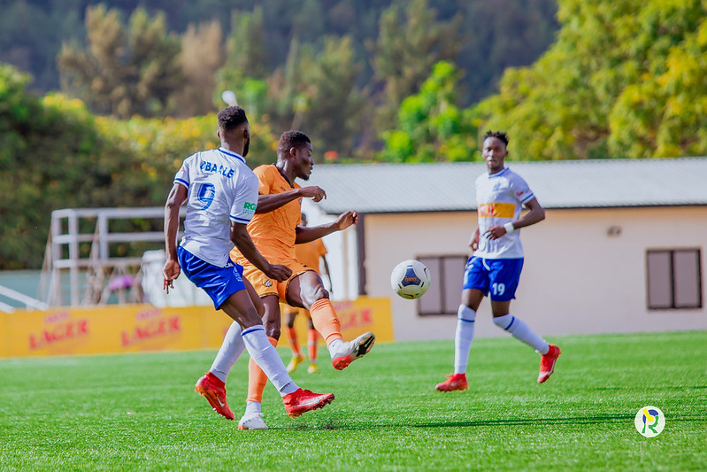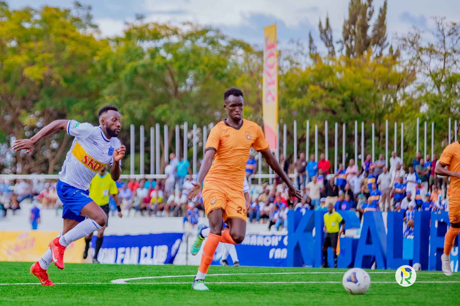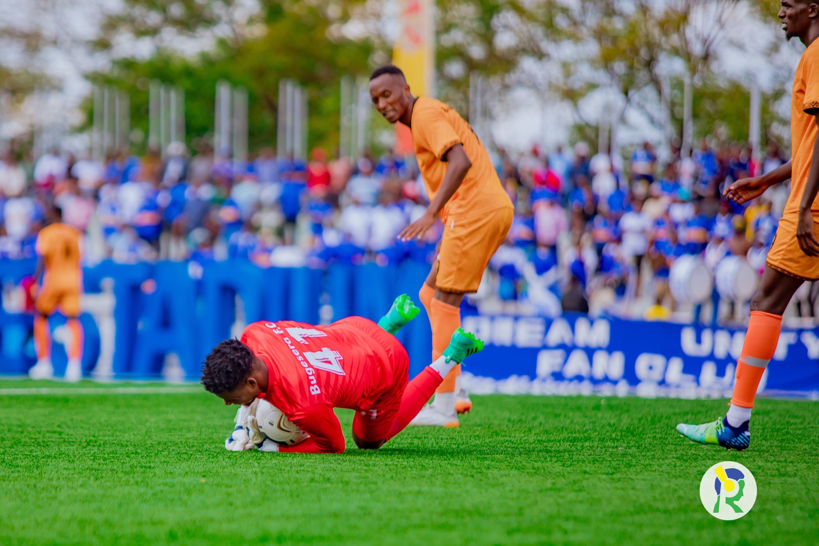 22' Rutahizamu wa Rayon Sports, Charles Bbale arase uburyo bwashoboraga kuvamo igitego ku mupira Tuyisenge Arsene amuhinduriye maze aterekaho umutwe uhita ujya mu biganza by'umunyezamu