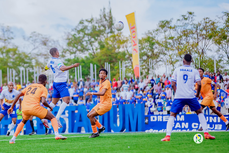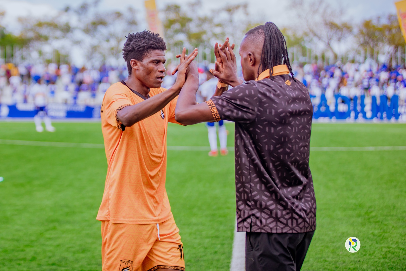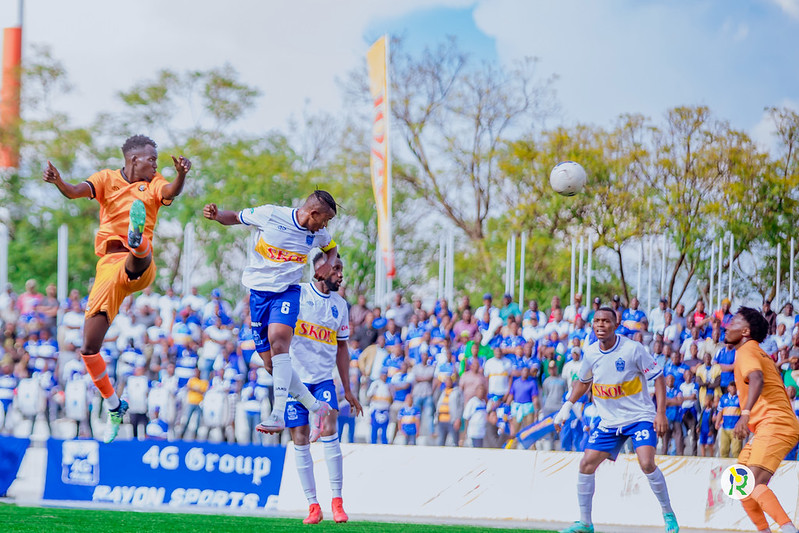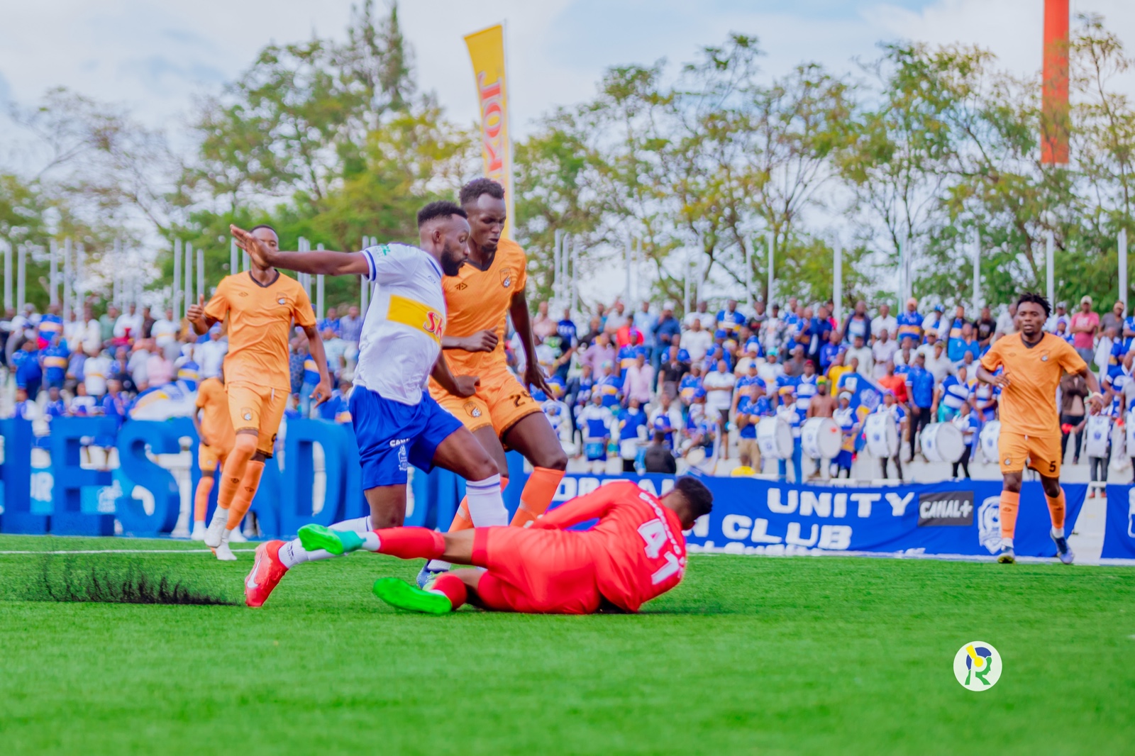 22' Rutahizamu wa Rayon Sports, Charles Bbale arase uburyo bwashoboraga kuvamo igitego ku mupira Tuyisenge Arsene amuhinduriye maze aterekaho umutwe uhita ujya mu biganza by'umunyezamu