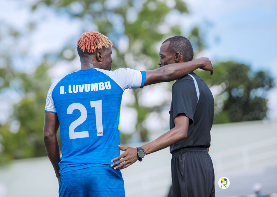 Ntarindwa Aimable ukina mu kibuga hagati, abonye ikarita y'umuhondo ku ikosa yari akoreye Luvumbu