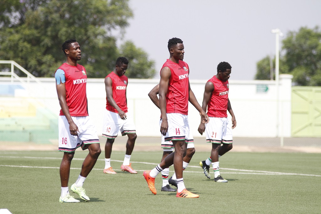 Abakinnyi ba Kenya barimo kwishyushya mbere yo gutangira umukino