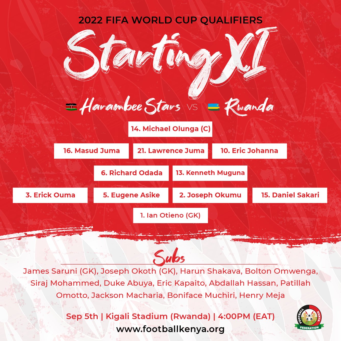 Kenya iri gukina n'u Rwanda, tariki 2 Nzeri yari yakiriye igihugu cya Uganda banganya ubusa ku busa. U Rwanda rurasabwa gutsinda uyu mukino ngo rwizere kuva ku mwanya wa nyuma, ndetse no kwizera ku guma mu irushanwa ryo kuyobora itsinda.
