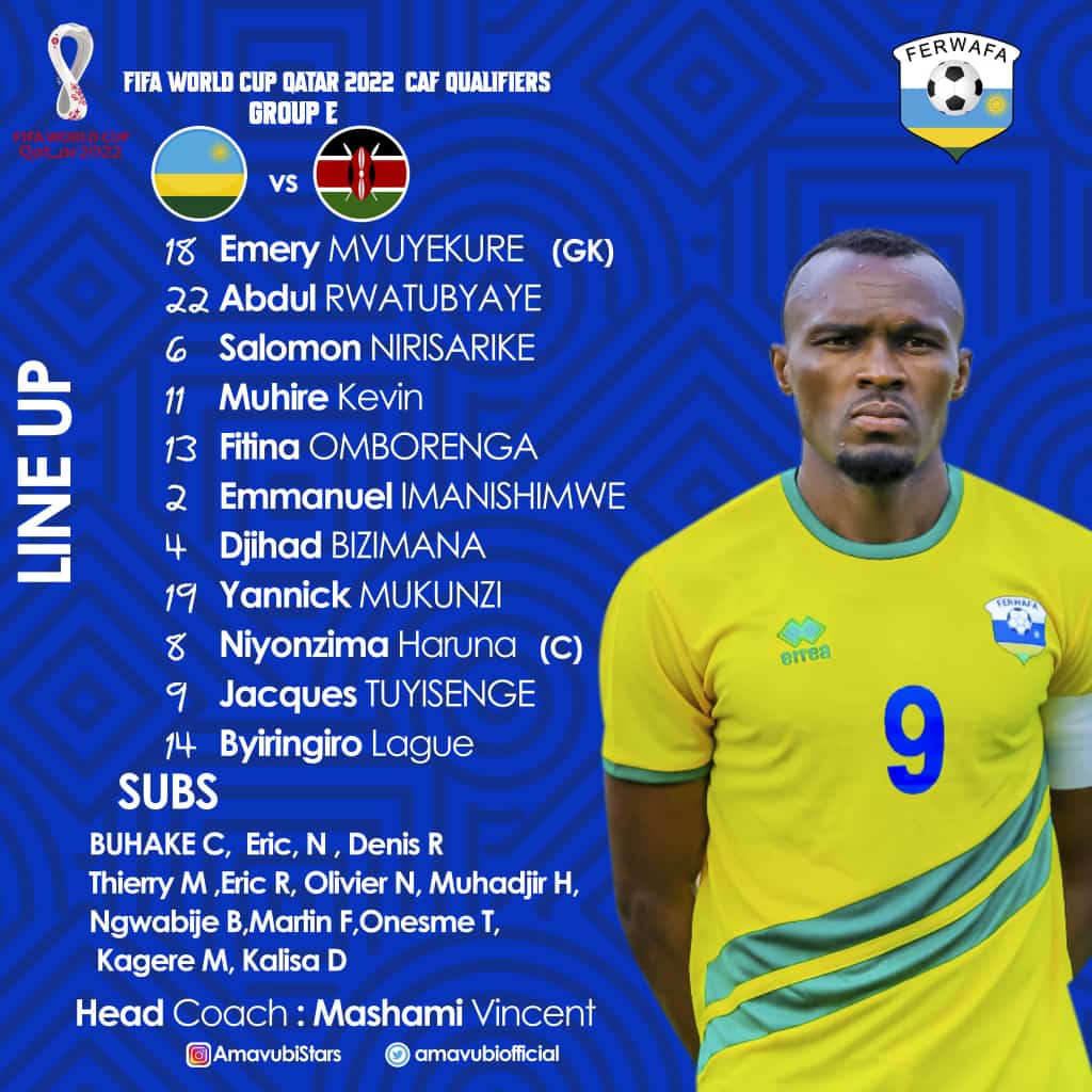 10' Goalllllllllllll Igitego cya mbere cya Kenya gitsinzwe na Michael Olunga ku mupira umuzamu Mvuyekure Emery yari yamaze kugwa, Rwatubyaye Abdoul na Nirisarike bose barwanira mu izamu umupira bawukuyemo usanga aho Kapiteni Michael Olunga ahagaze awushyira mu izamu neza.