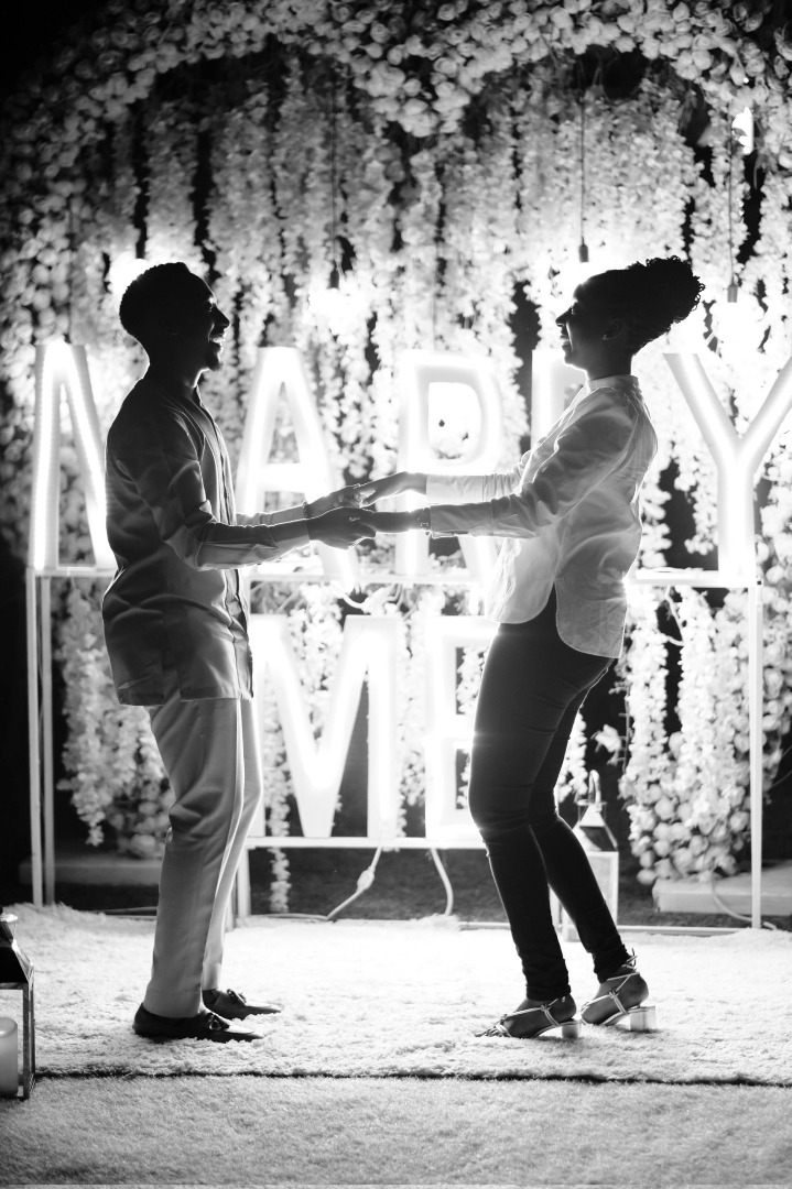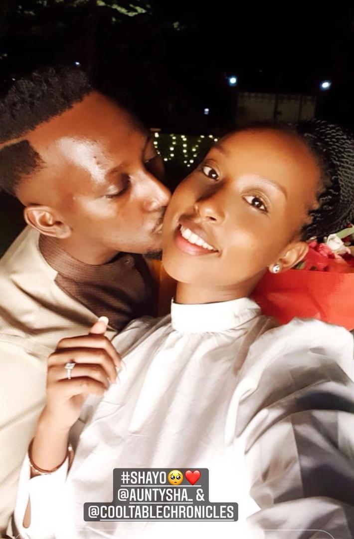 Mu kumusubiza, Rugamba yagaragaje ifoto ari kumwe n’umukunzi we bari ahantu hatatse handitse "Marry me" ubwo yamusabaga kumwemerera bakazabana ubuziraherezo nk’umugabo n’umugore.
