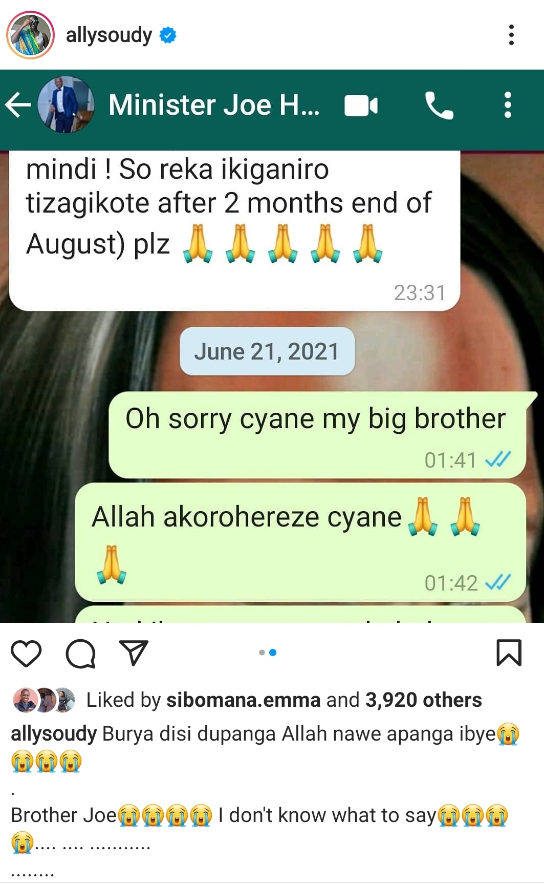 Ally Soudy yahishuye ko yari afitanye ikiganiro na Amb. Joe Habineza mu mpera z'uku kwezi
