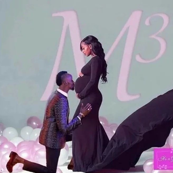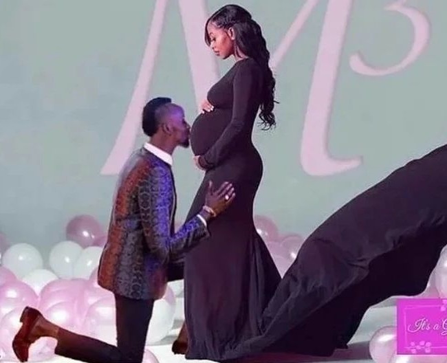 Meddy yasomye Mimi ku nda, inyuma hari ijambo M n'umubare 3, byerekana ko bungutse undi muntu wa gatatu mu buzima bwabo