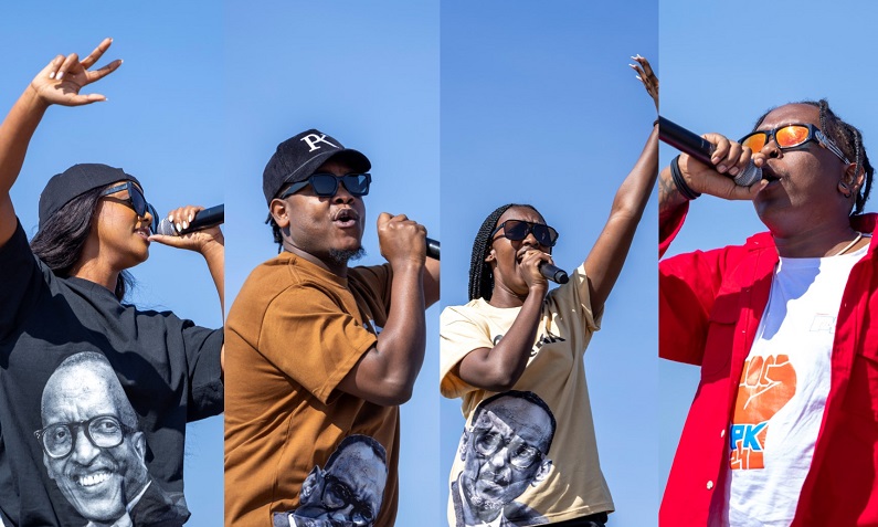 Umuraperi Bushali yisunze indirimbo zubakiye ku mudiho wa Kinyaatrap yataramiye urubyiruko n'abandi bitabiriye ibikorwa byo kwiyamamaza