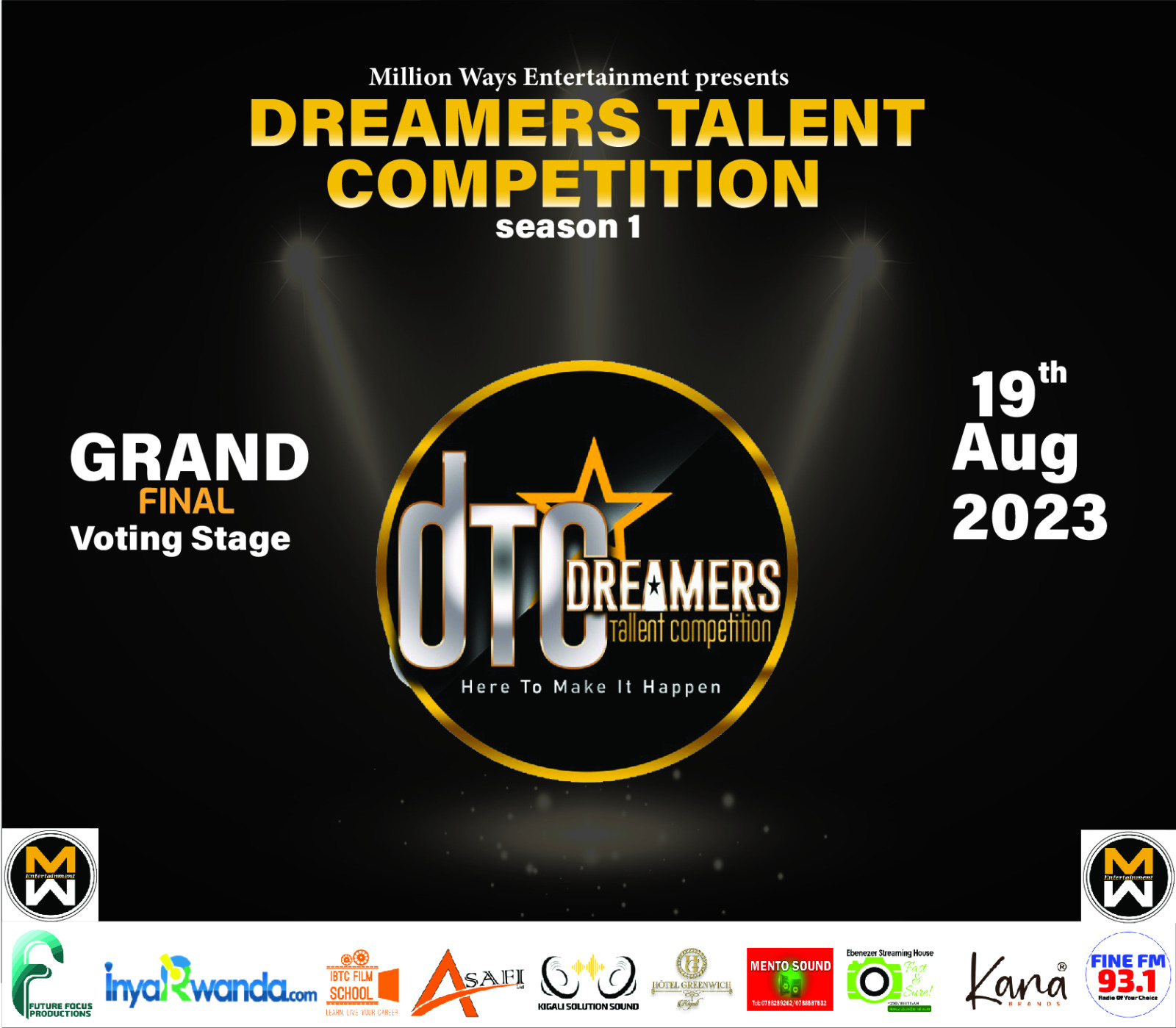 Umuyobozi wa Milliyon Ways Entatainment atangaza ko bamwe mu bafatanyabikorwa b’imena barimo InyaRwanda.com, Fine FM 93.1, Asafi Printers, IBTC Films School, Ebenezer Streaming House, Kana Brands, Kigali Solution Sounds na Mento Sounds.