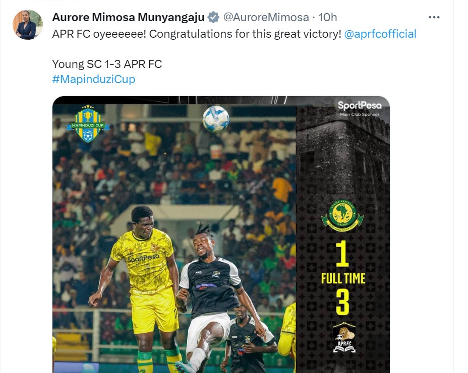 APR FC uburyo yitwaye. Yagize ati "APR FC Oyeeeeee! Mwakoze cyane ku