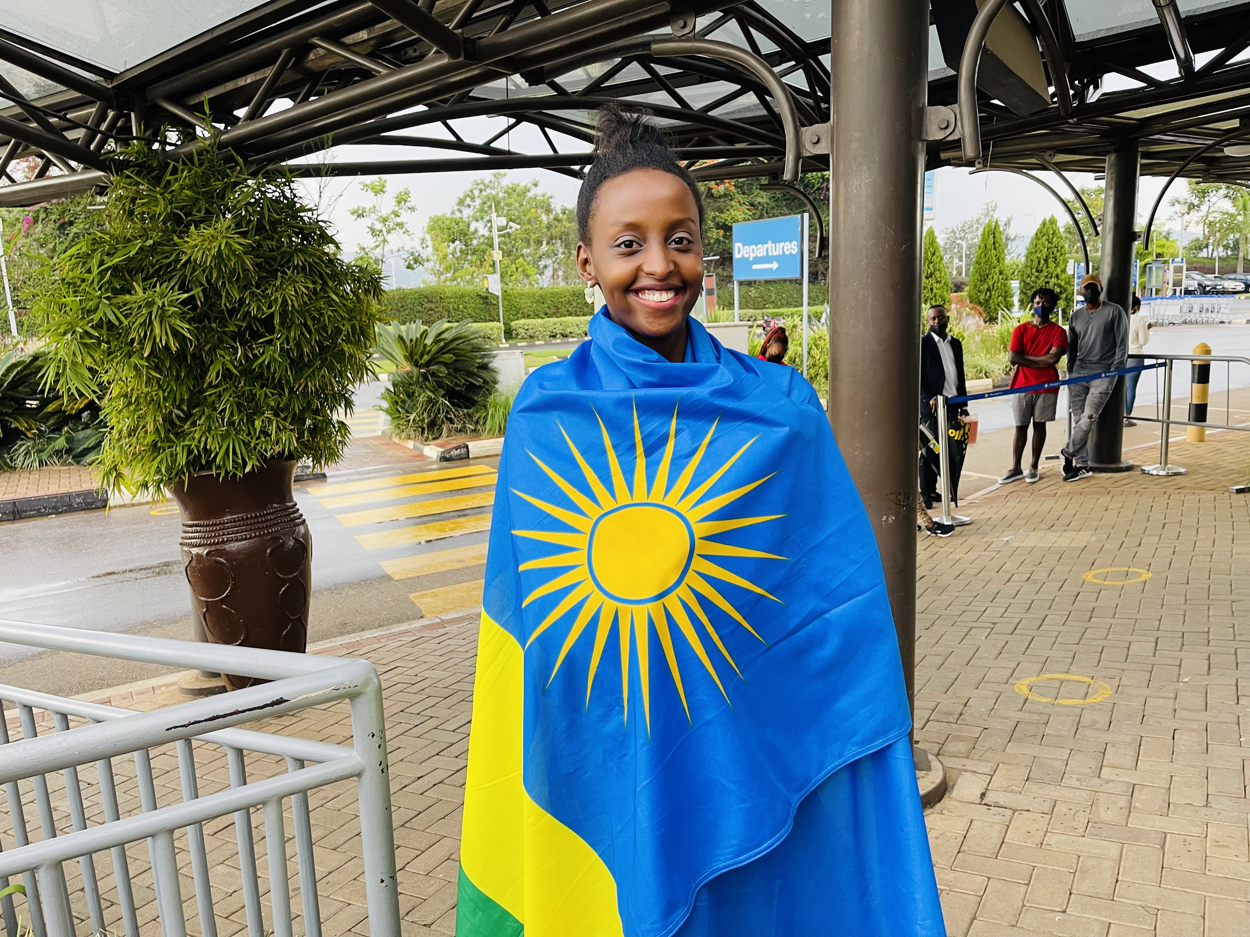 Ku kibuga cy’indege yaherekejwe na Miss Iradukunda