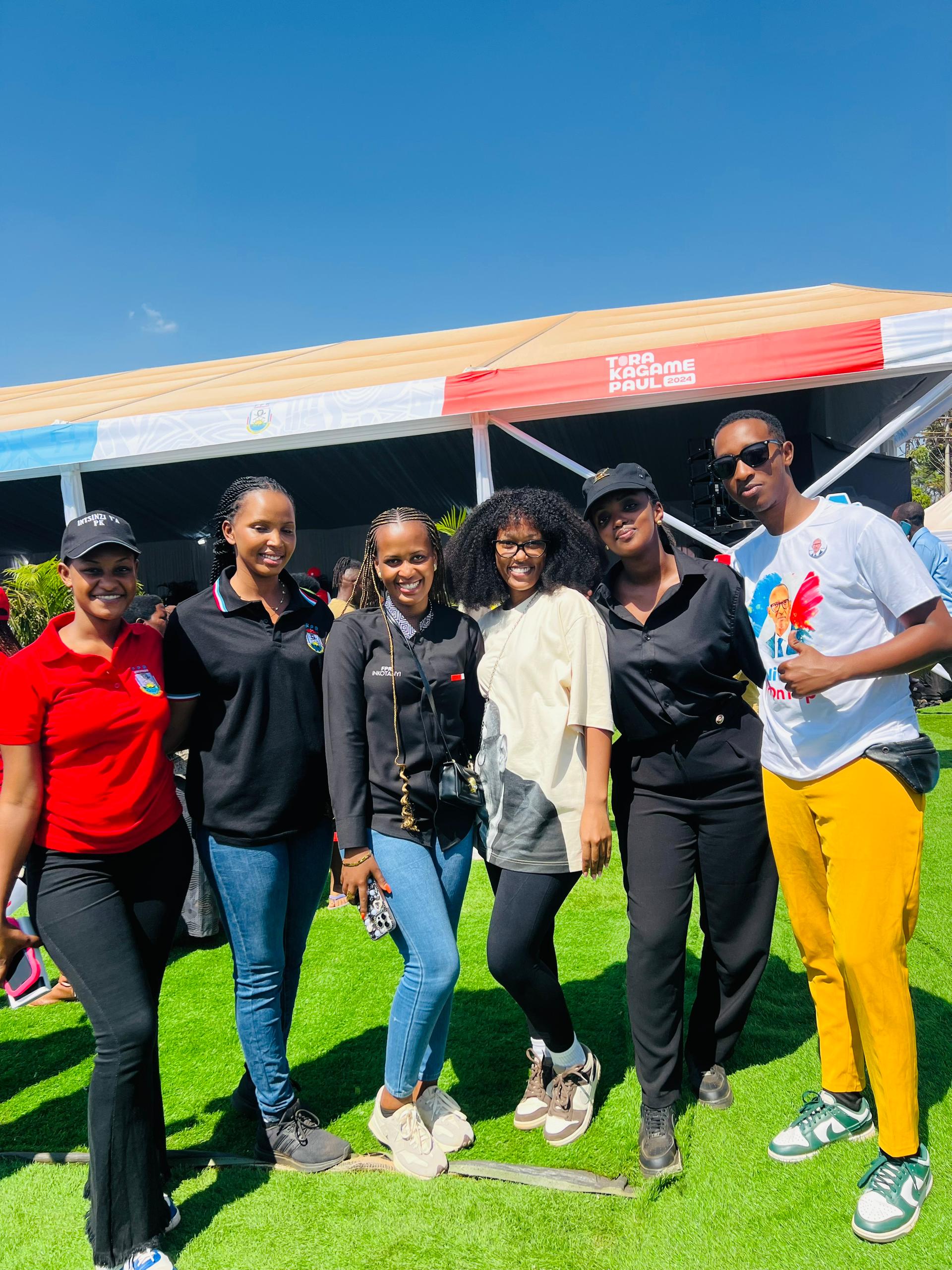 Umubyinnyi wamamaye nka Titi Brown ari kumwe na bagenzi be babyinnye indirimbo'Ogera' ya Bruce Melodie na Bwiza yamamaza Perezida Kagame