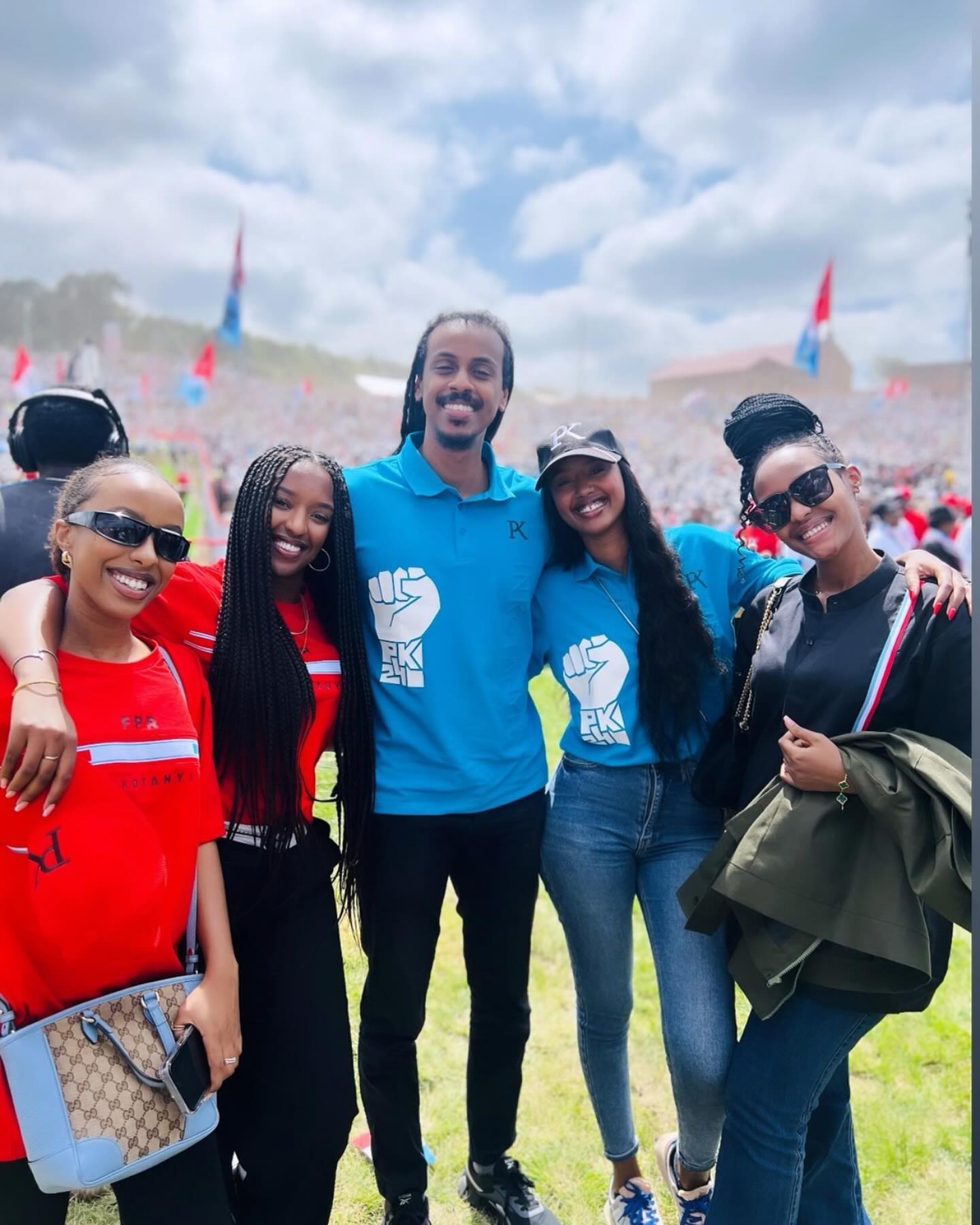 Umunyamideli wamamaye nka Isimbi Model [Uri imbere]- Inyuma ye hari No Brainer wamamaye ku rubuga rwa x ndetse na Noella Shyak uzwi nka 'Agapeti Gakonje'