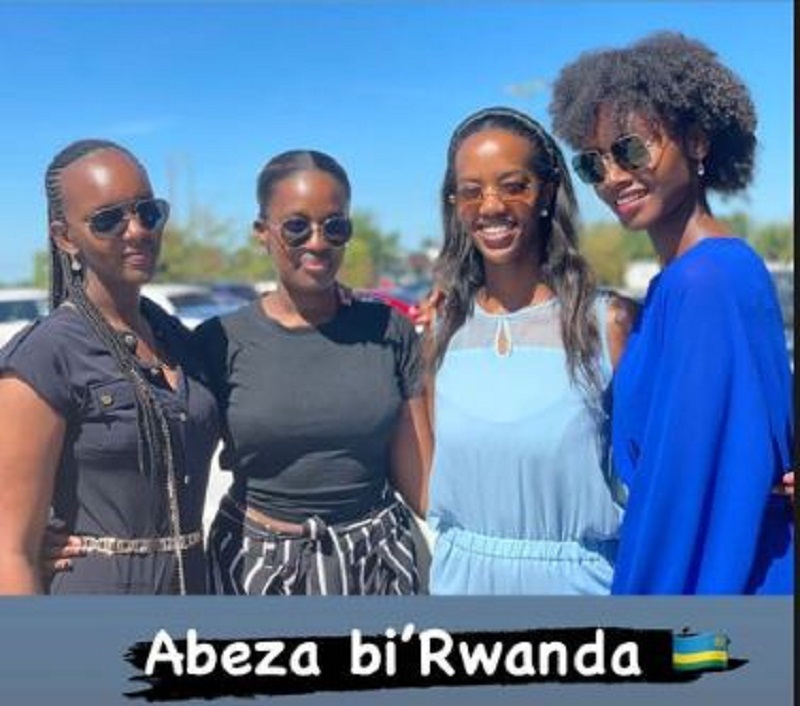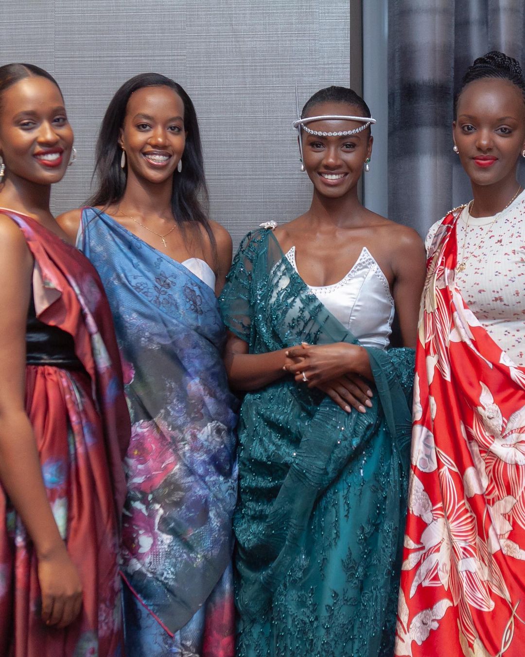 Ba Nyampinga b'u Rwanda uko ari bane Aurore Kayibanda wambaye ikanzu y'umukara (2012), Nimwiza Meghan (2019), hagati inshuti yabo, Iradukunda Elsa (2017) na Grace Bahati (2009) uri no mu kwezi kwa buki, nyuma yo gushyingiranwa na Murekezi Pacifique