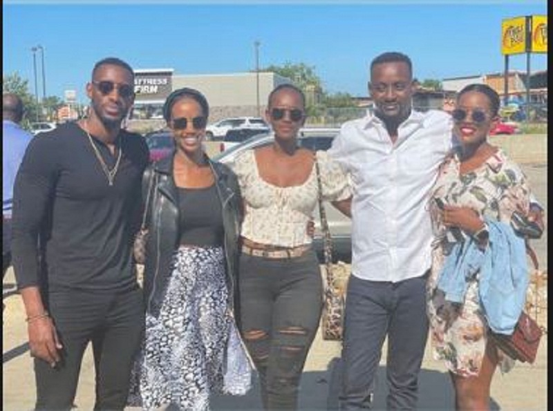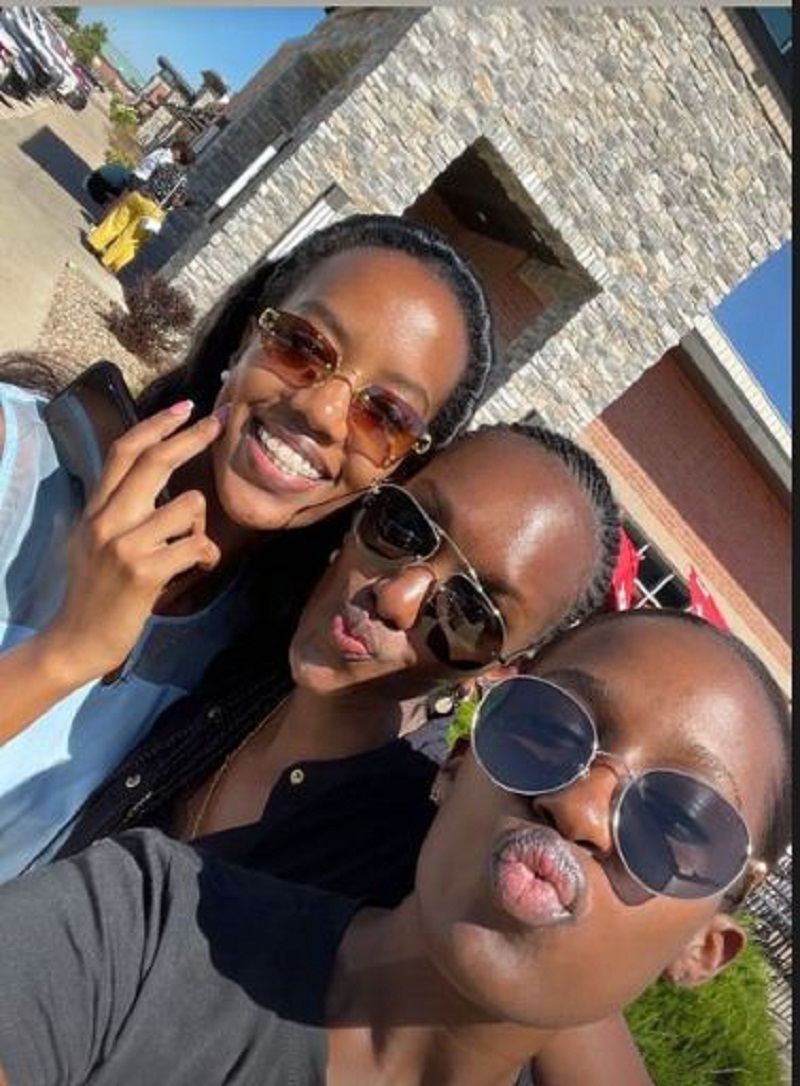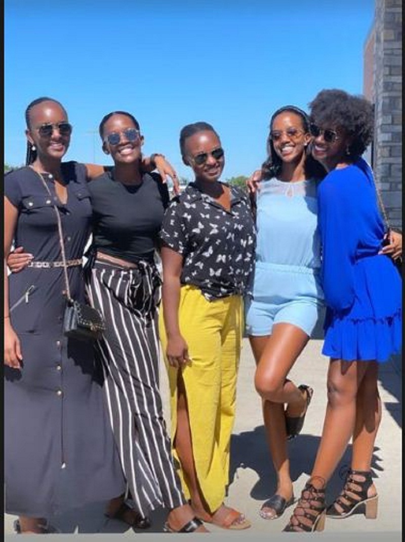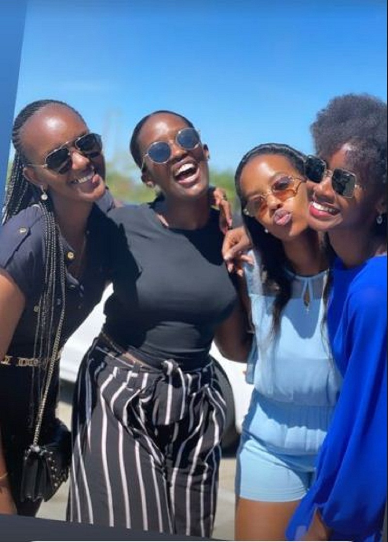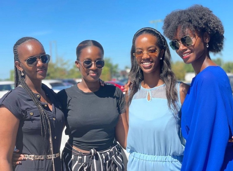 Jay Rwanda wambaye umukara hose, Iradukunda Elsa, Aurore Kayibanda na Nimwiza Meghan mu ifoto igaragaza ibihe byiza bagiranye