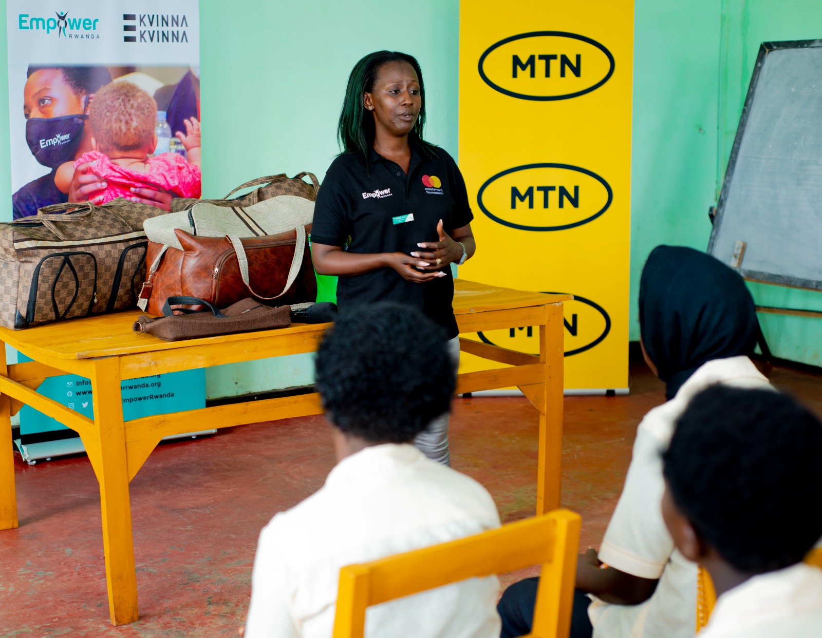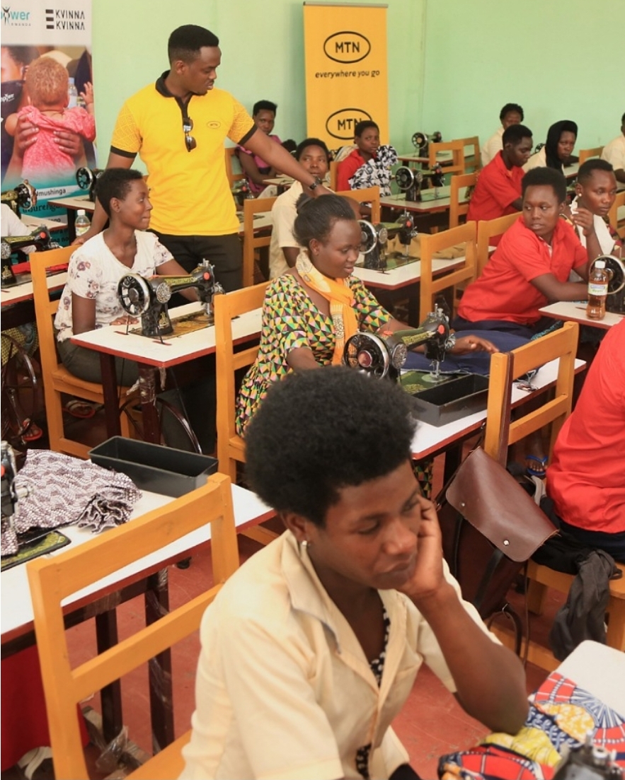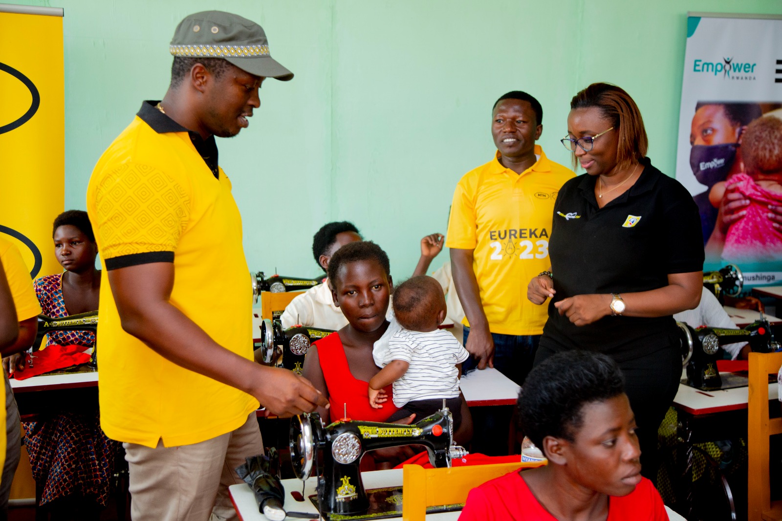 Abakozi ba MTN Rwanda baganiriye n'abangavu babyaye bakiri bato bafashwa n'umuryango utegamiye kuri Leta witwa Empower Rwanda by'umwihariko abigishwa umwuga w'ubudozi.