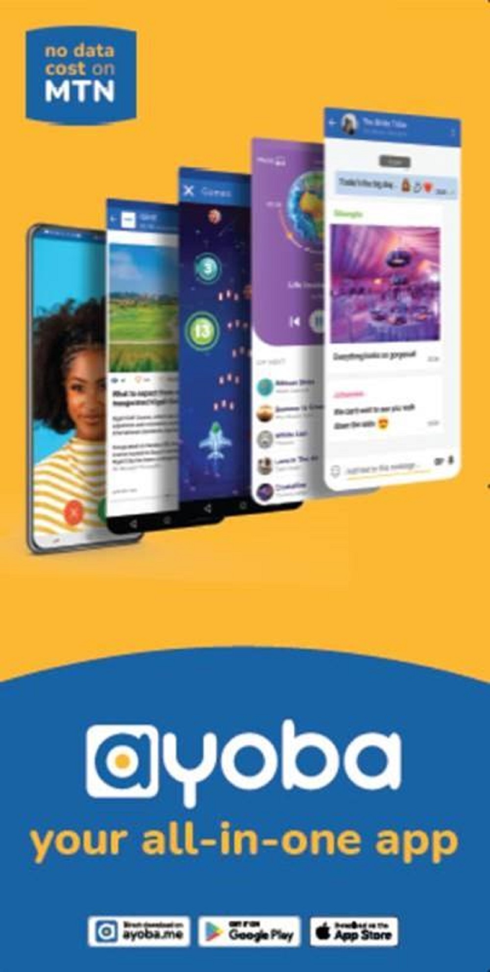 Nawe wisigara inyuma mu isi y'ibyishimo. Hamwe na "Ayoba"! biroroshye kuyitunga muri telefone yawe, aka kanya ushobora kuyidawunirodinga wifashishije Google PlayStore, cyangwa AppleStore bitewe n'ubwoko bwa telefone yawe ipfa kuba gusa ari telefone igezweho (Smartphone). Ushobora no kuyidawunirodinga unyuze kuri www.ayoba.me