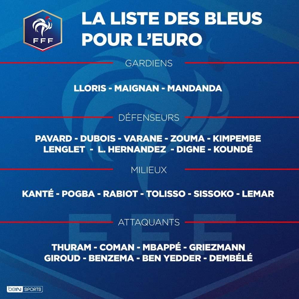 Amakipe y'ibihugu yabonye tike yo gukina igikombe cy'uburayi 2020, yatangiye guhamagara abakinnyi bayo azakoresha, aho kuri uyu mugoroba Didier Deschamps umutoza w'Abafaransa, yahamagaye abakinnyi bazavamo abazitabira iyi mikino izabera mu mijyi 12.
