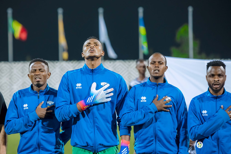 Abakinnyi b'Amavubi baririmba indirimbo yubahiriza igihugu