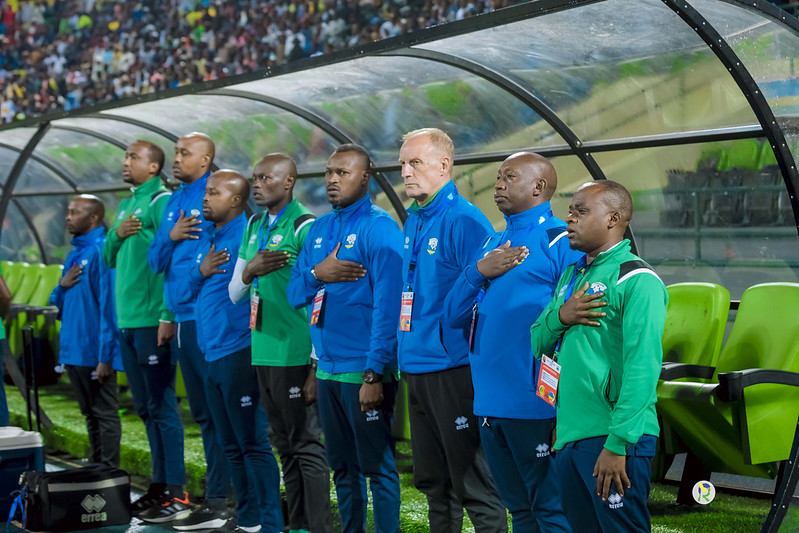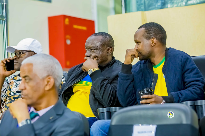 Abakinnyi b'Amavubi bari ku ntebe y'abasimbura mu minota ya nyuma y'umukino bari bahagurutse bareba ahava igitego