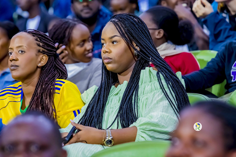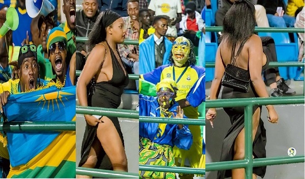 Umwe mu bakobwa baje kureba uyu mukino yambaye mu buryo butangaje