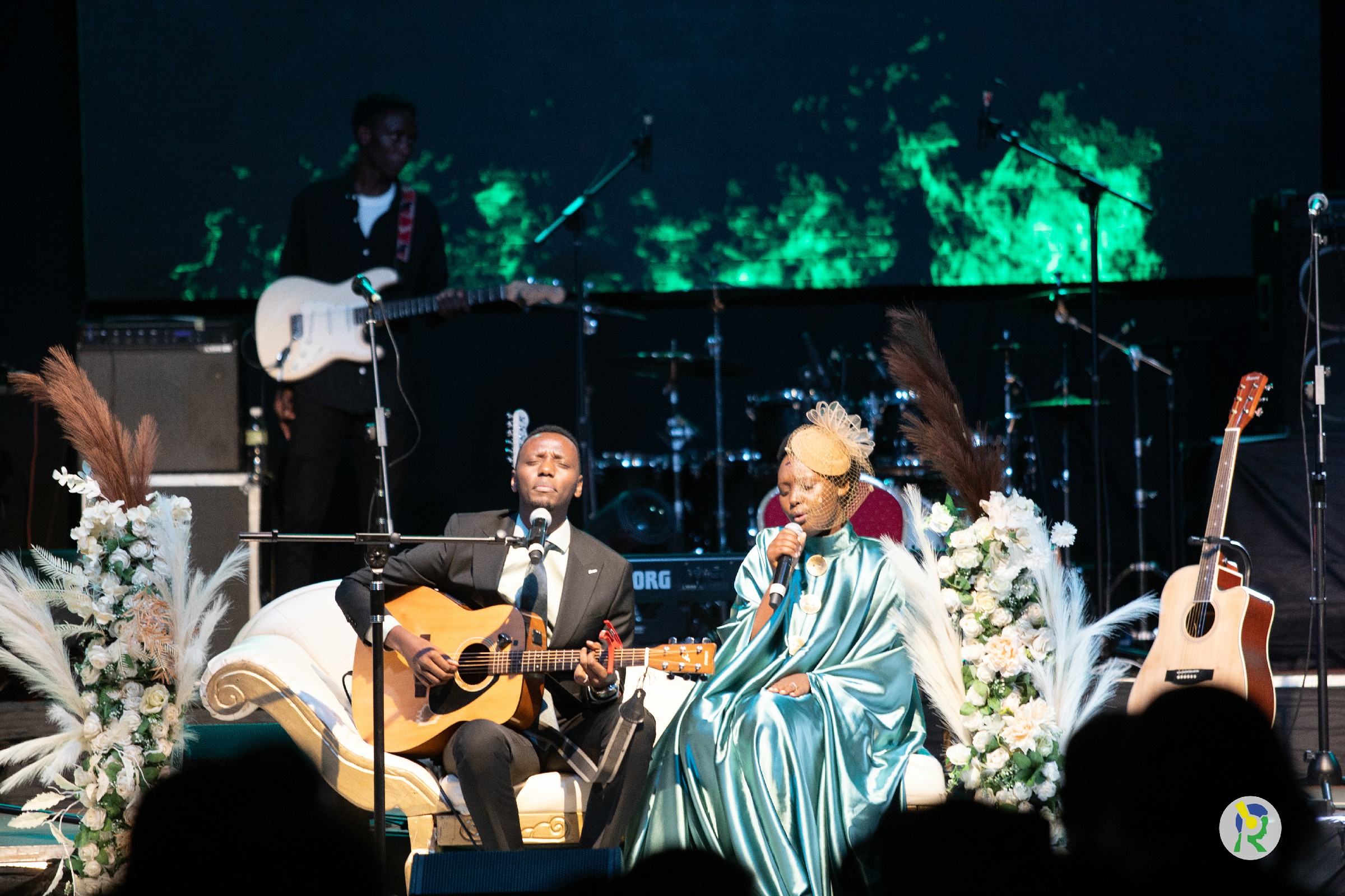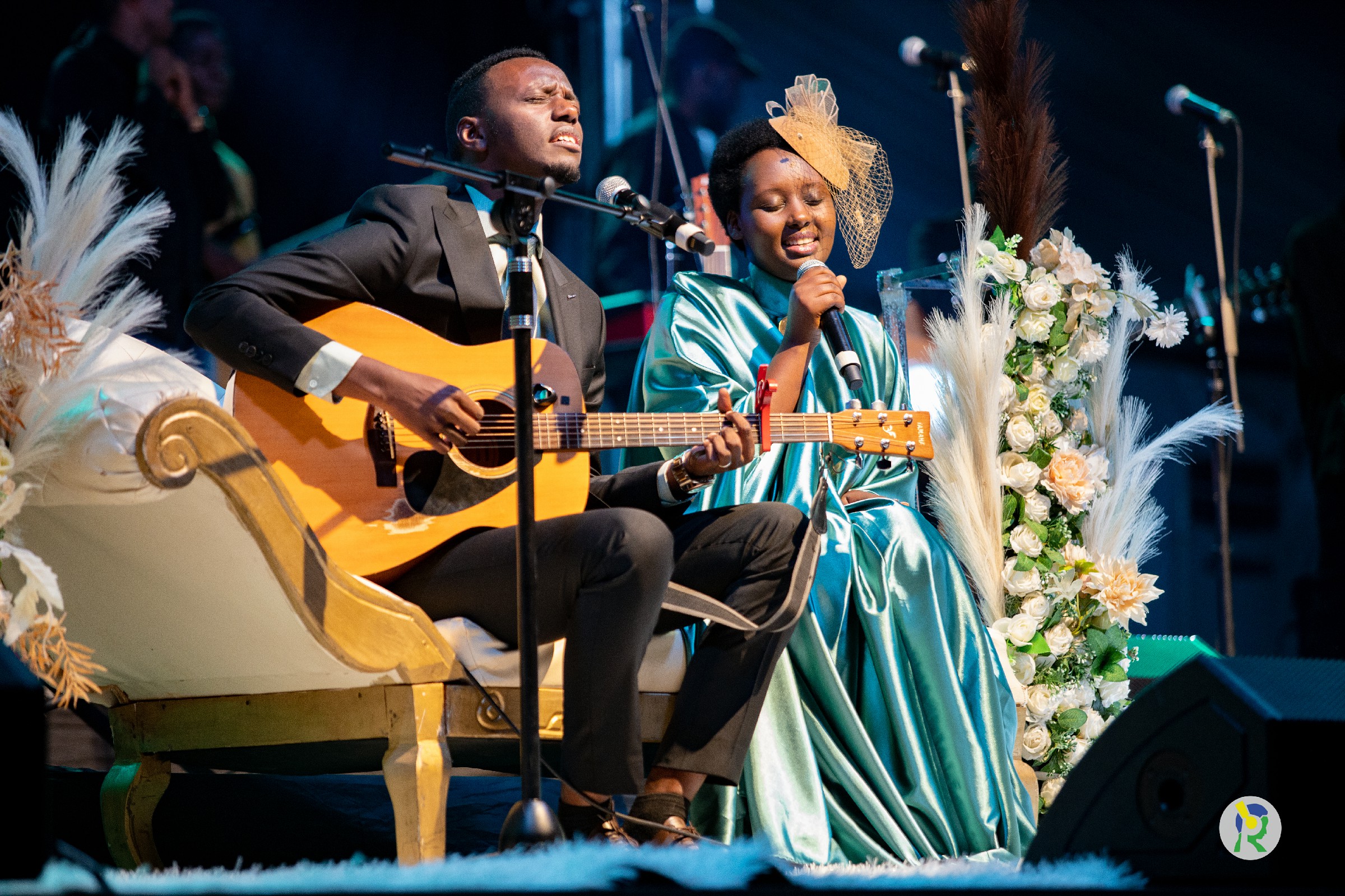 Aba baramyi baserutse mu myambaro myiza ubona ko rwose bari biteguye cyane iki gitaramo nk’ubukwe. Ni cyo gitaramo cya mbere bakoze kuva batangiye kuririmbana nk'itsinda ry'umugabo n'umugore.