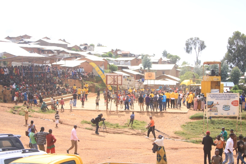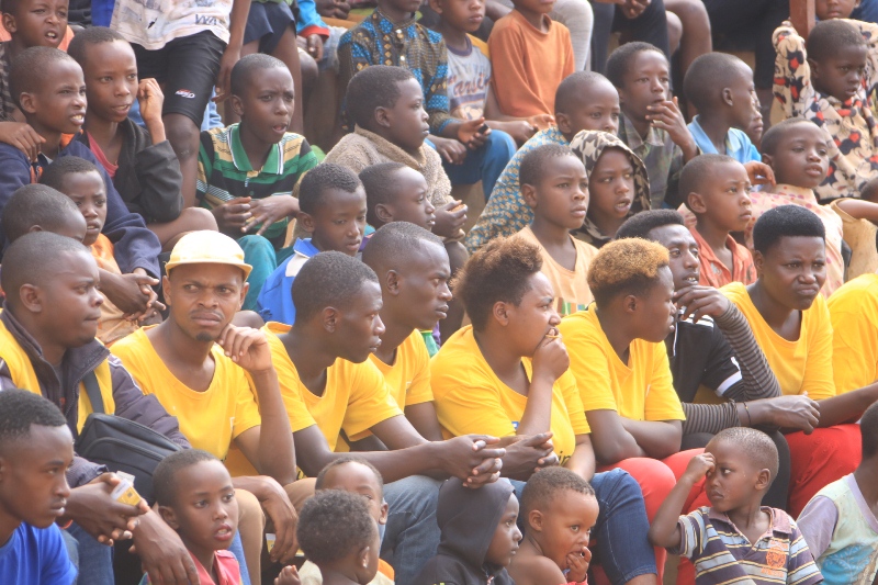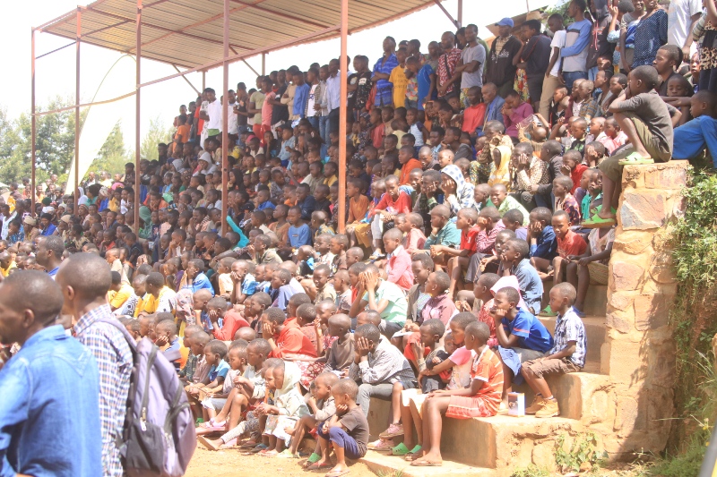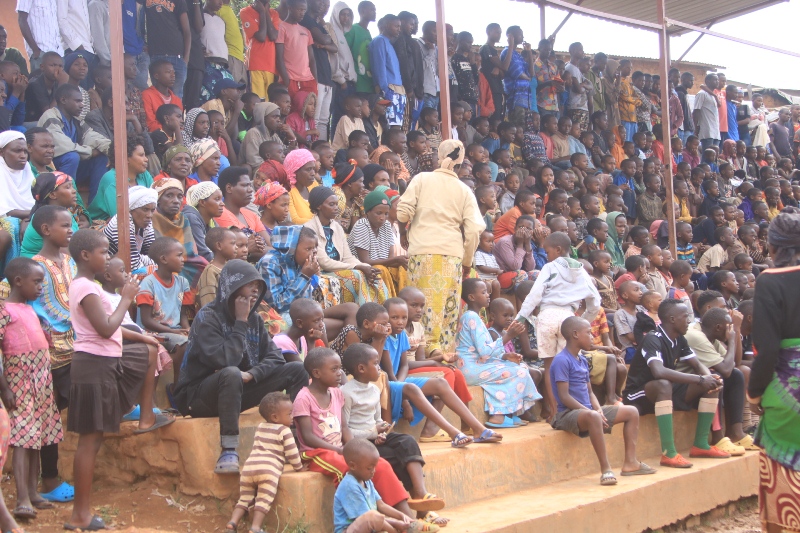 aho impunzi zo mu nkambi ya Gihembe zahawe impano na MTN Rwanda. Ni igikorwa cyitabiriwe n’abana benshi cyane ugereranyije n’ababyeyi aho bahuriye ku kibuga