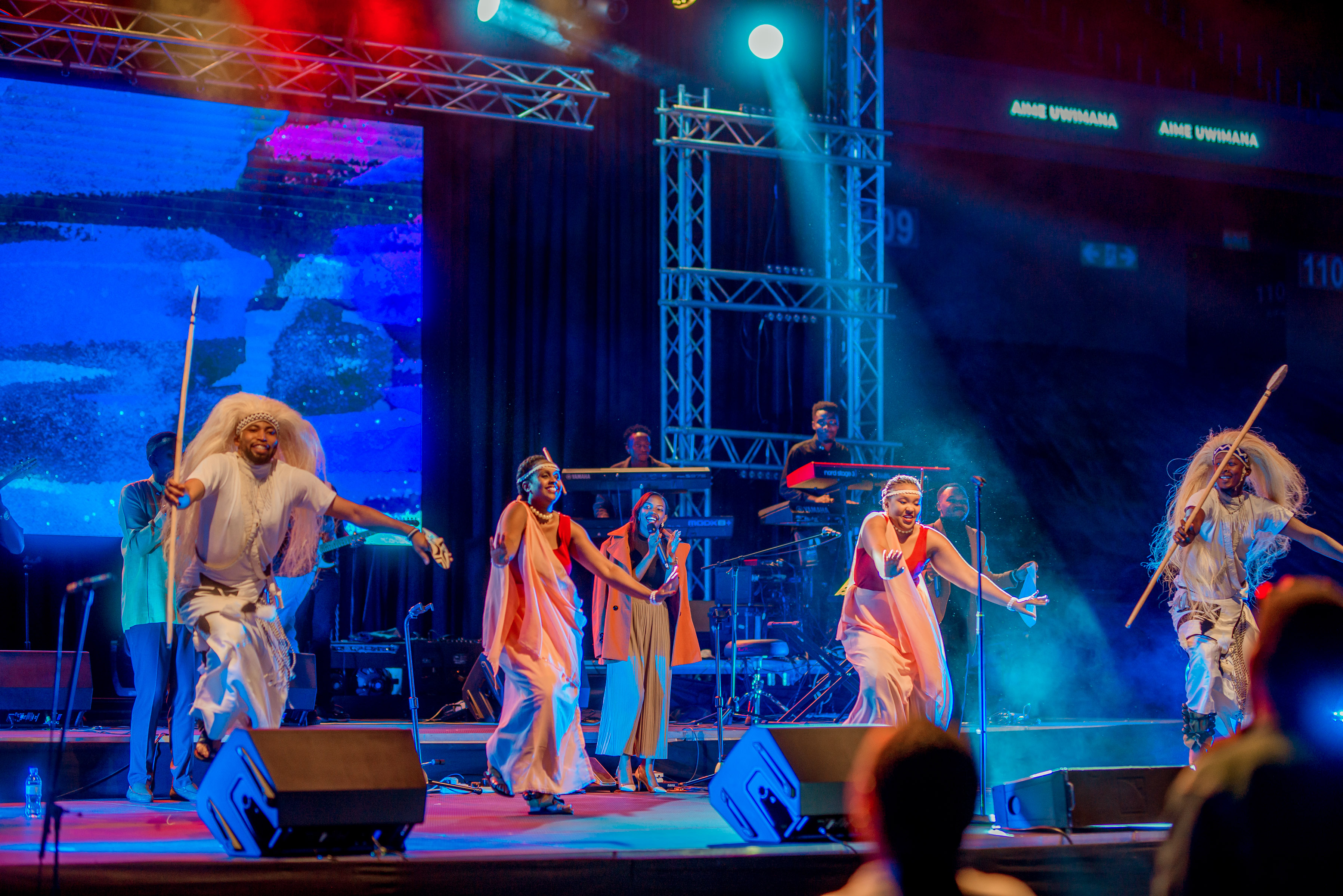 Abaririmbyi bafashije Aime Uwimana kuri stage