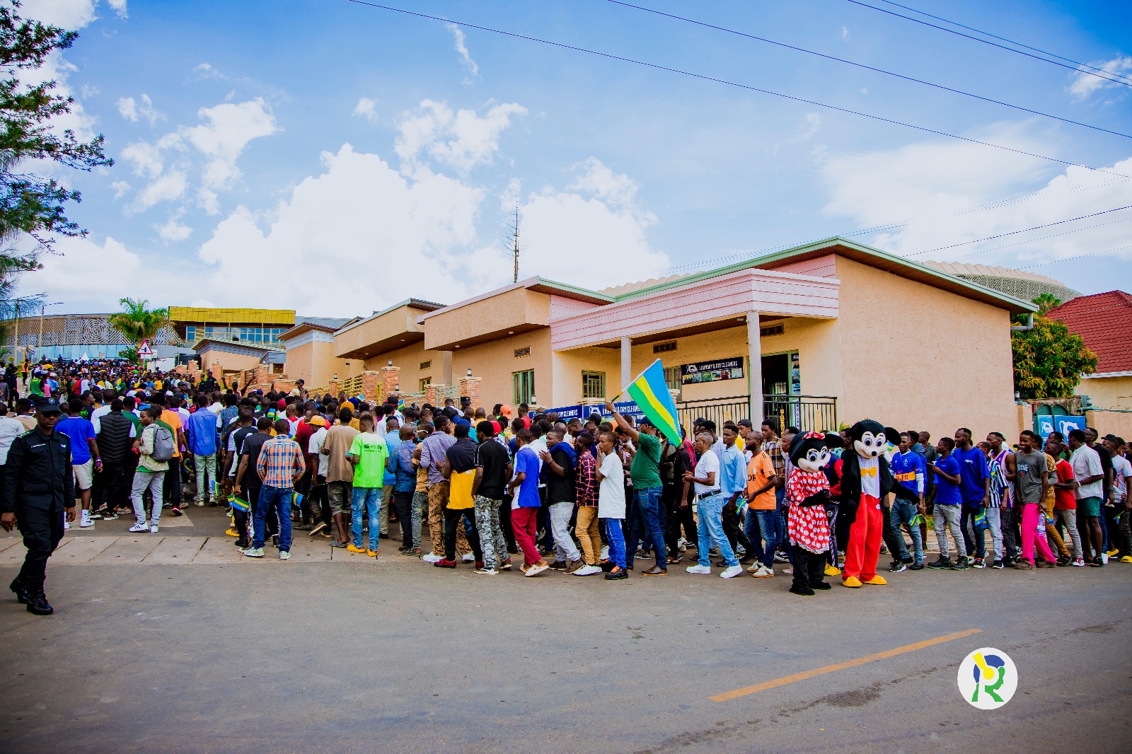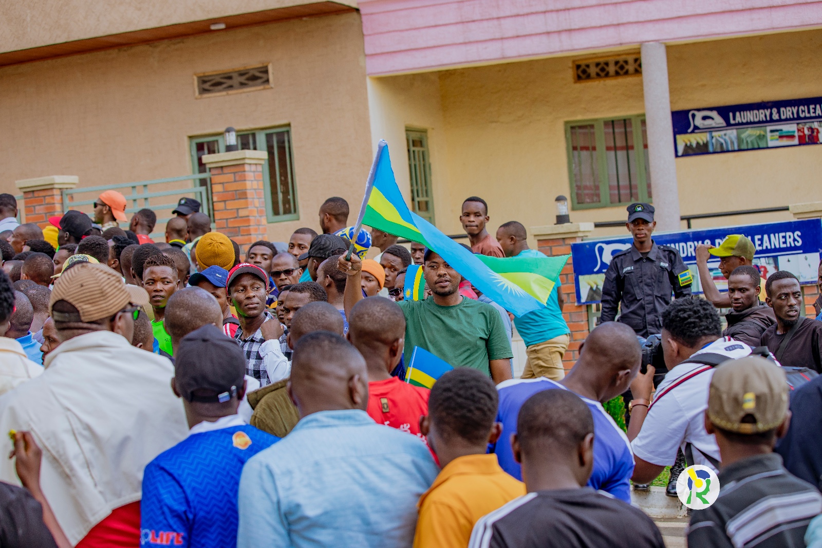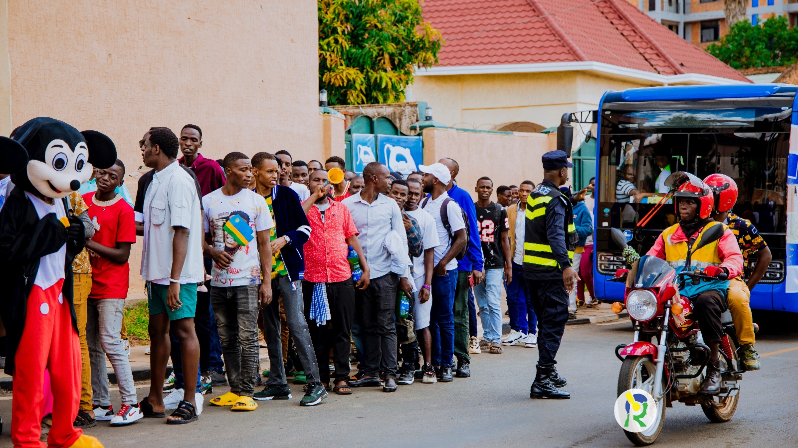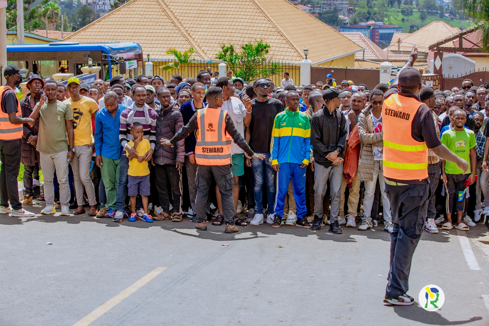 Amafoto y'Abafana bari bari hanze ya Stade Amahoro bategereje ko bahabwa uburenganzira bwo kwinjira maze bakareba umukino w'u Rwanda na Nigeria