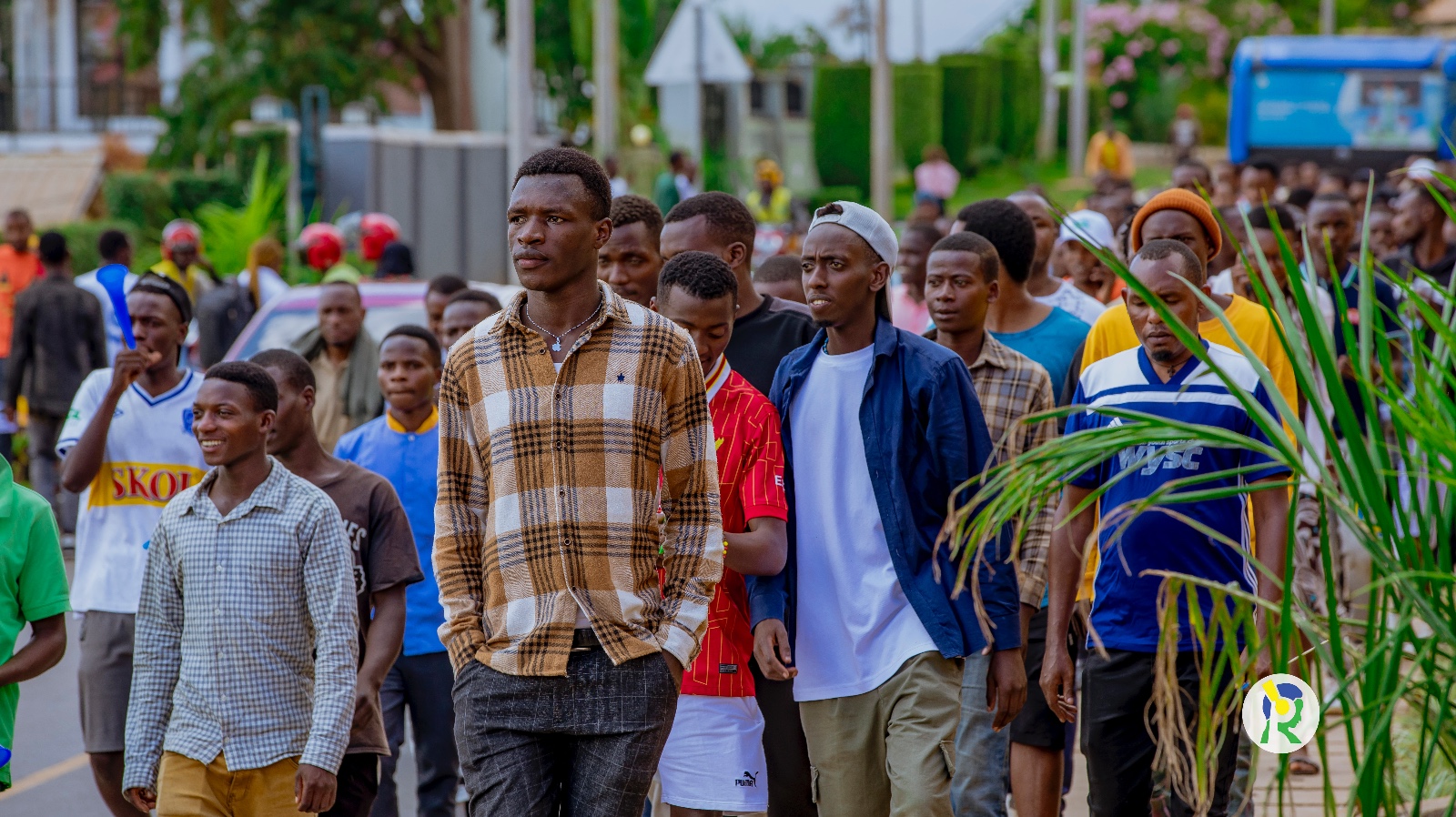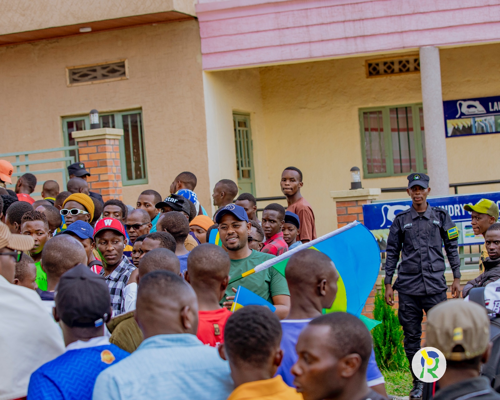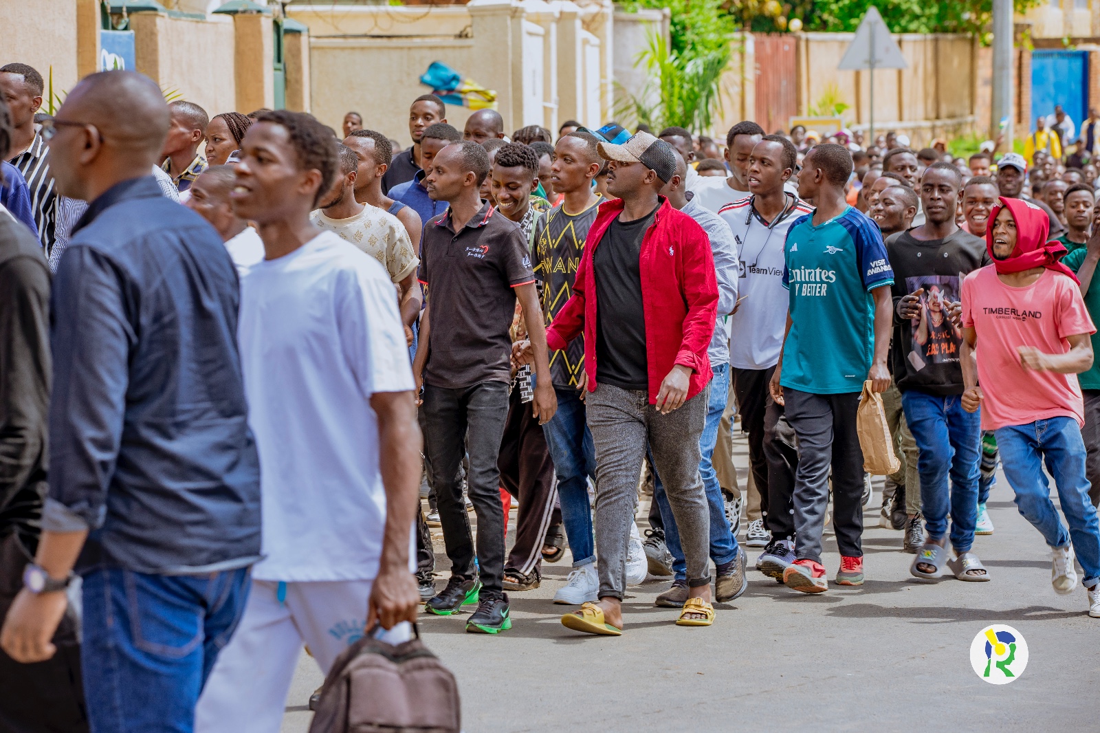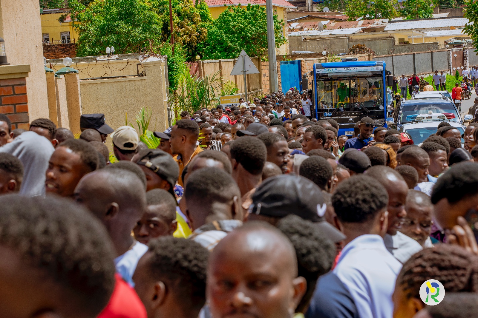 Amafoto y'Abafana bari bari hanze ya Stade Amahoro bategereje ko bahabwa uburenganzira bwo kwinjira maze bakareba umukino w'u Rwanda na Nigeria