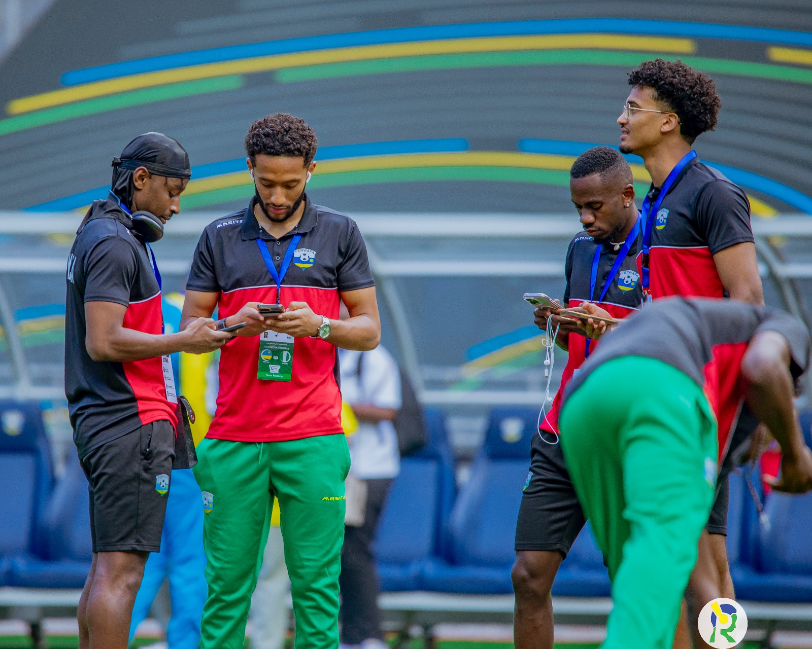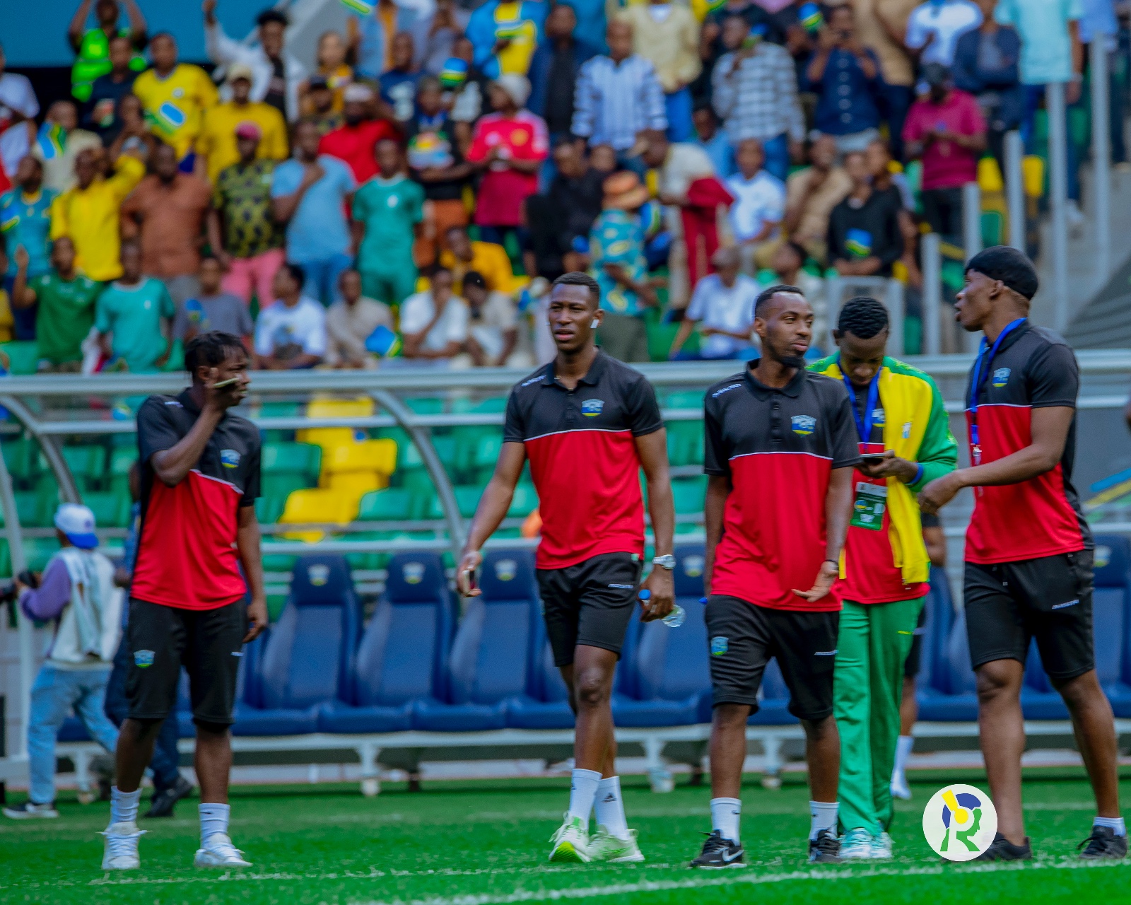 Abakinnyi b'u Rwanda ubwo bari bamaze gusohoka mu Rwambariro baje kureba uko ikibuga kimeze