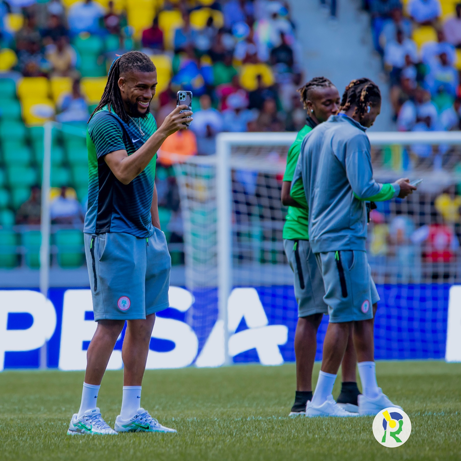 Abakinnyi ba Nigeria ubwo bari bari kureba niba ikibuga kimeze neza
