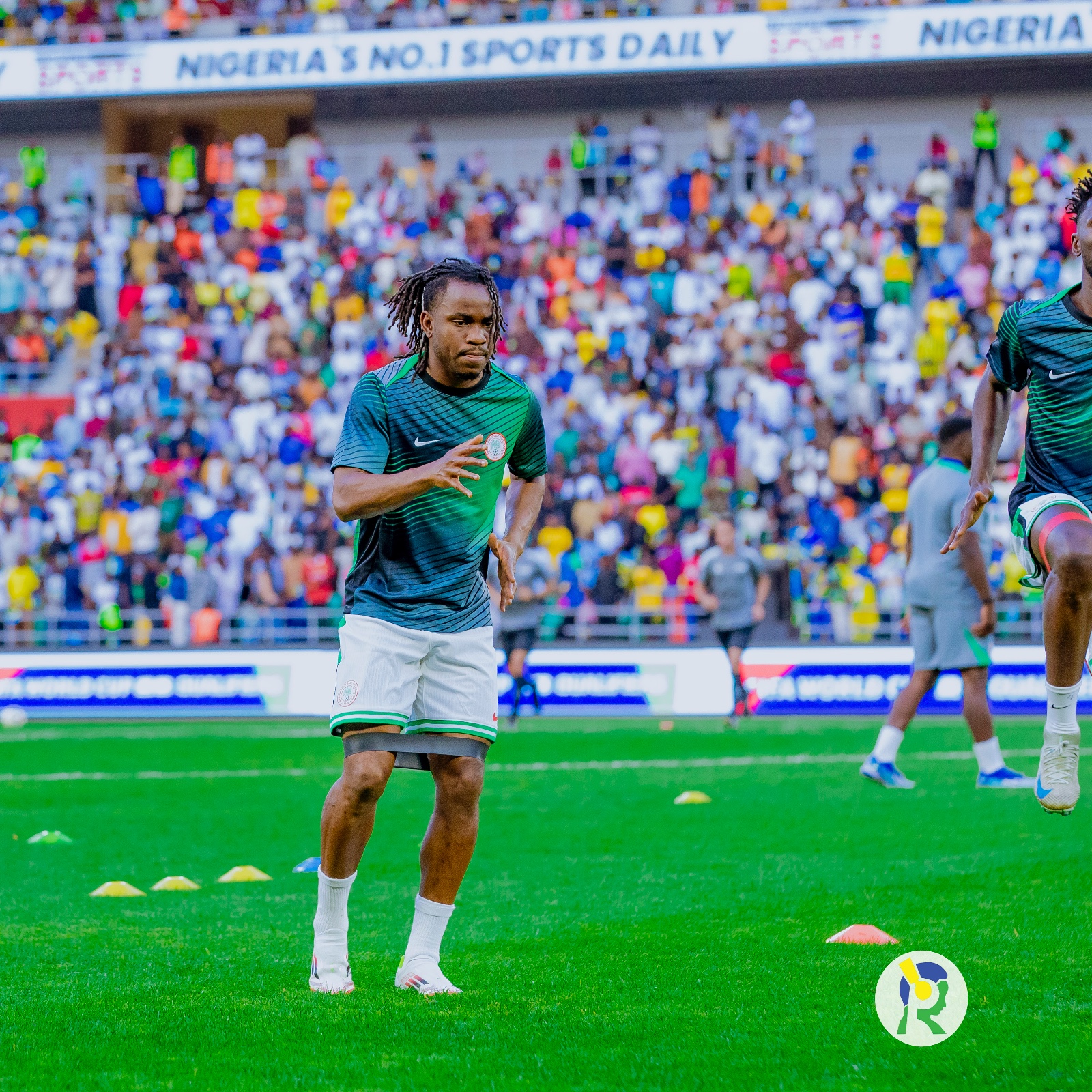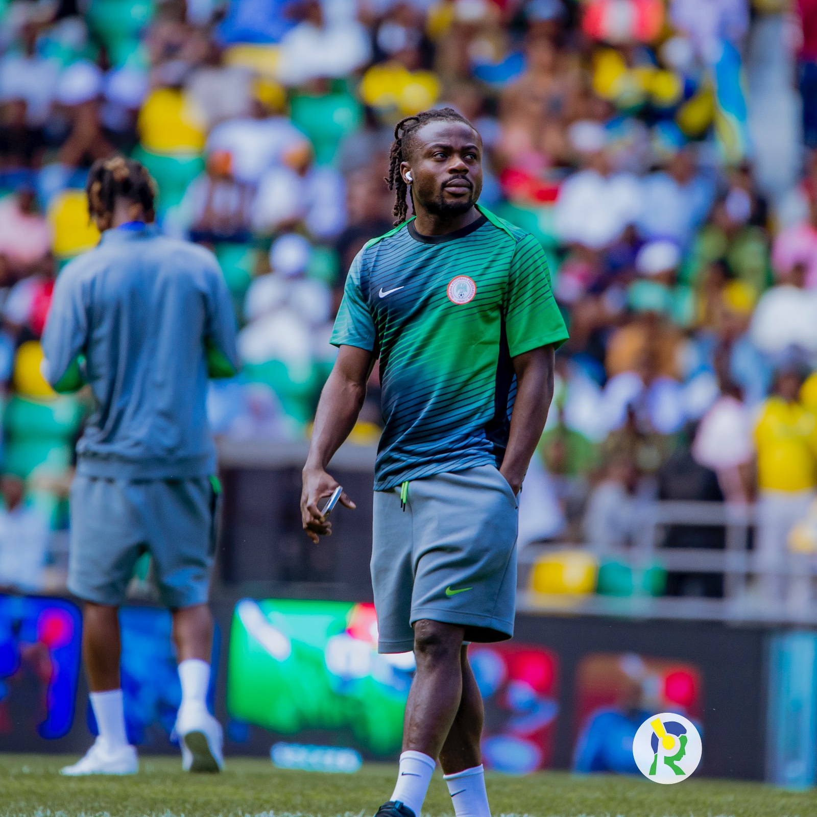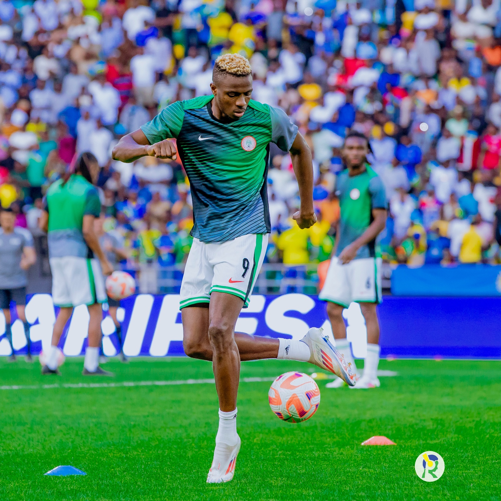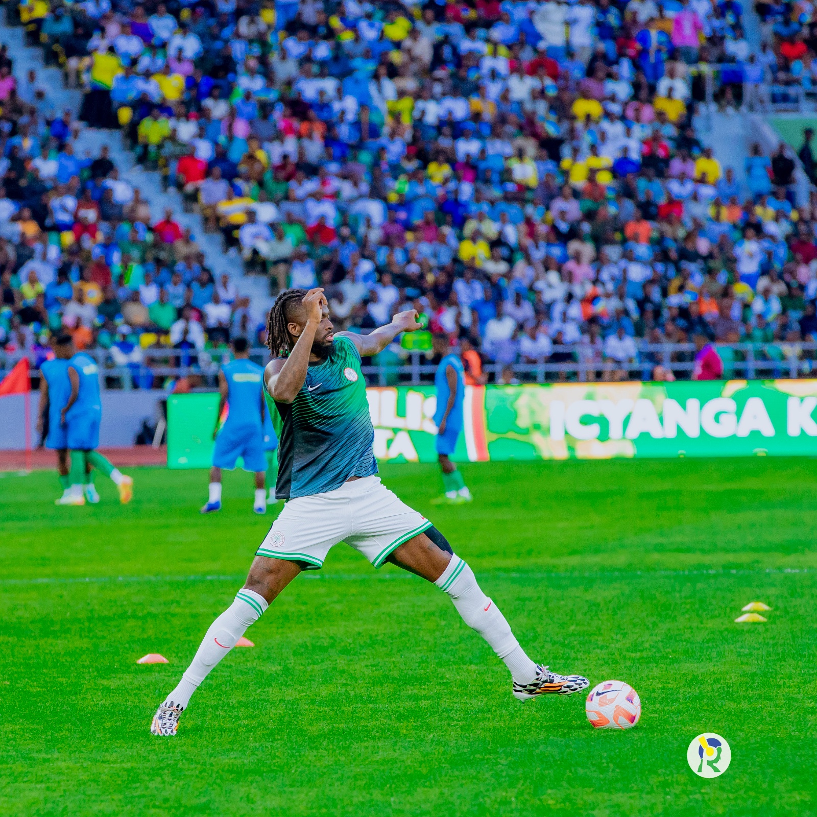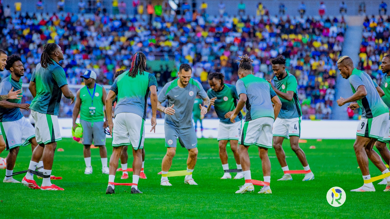 Abakinnyi ba Nigeria ubwo bari baje kwishyushya mbere y'uko umukino utangira