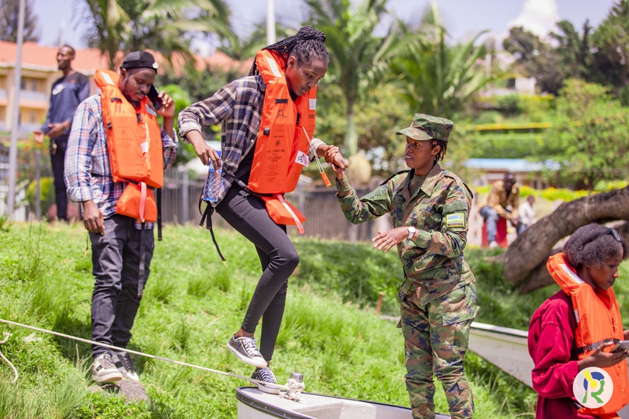 Miss Vanessa bamwambika umwambaro w’ubwirinzi bwo mu mazi