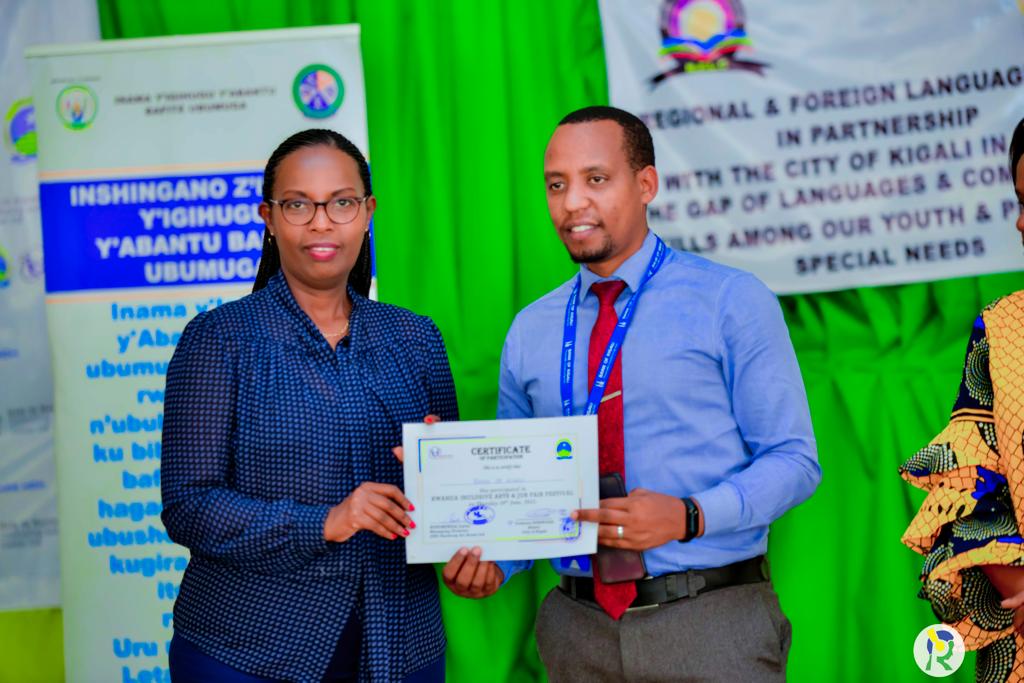 Habayeho umuhango wo gutanga impamyabushobozi ku bigo bitandukanye birimo ibikoreramo aba bafite ubumuga, ibibakoresha n'ibibafasha mu kugezwaho serivisi zitandukanye nka Dotpharm ibagezaho imiti, bazishyikirizwa n'abayobozi bakuru bari bitabiriye barimo Minisitiri w’Abakozi ba Leta n'Umurimo, Rwanyindo Fanfan.