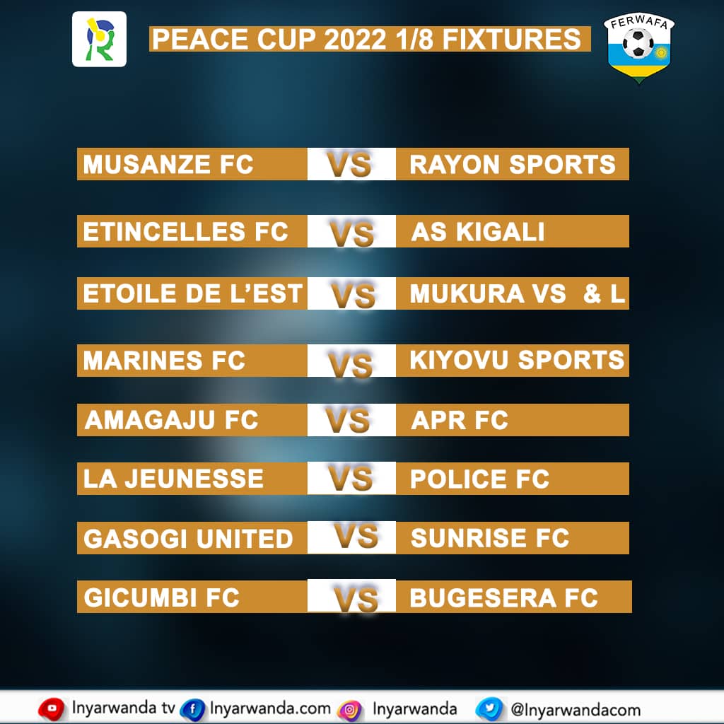 Tombola ya 1/8 mu irushanwa ry’igikombe cy’Amahoro, yasize Musanze FC ihagaze neza muri uyu mwaka itomboye Rayon Sports ifite amateka akomeye muri iri rushanwa, mu gihe APR FC ishobora kudatwara shampiyona izatangira urugamba rwo gushaka iki gikombe ihereye i Nyagisenyi yesurana na Amagaju FC.