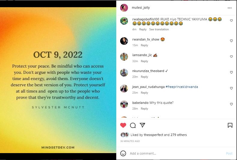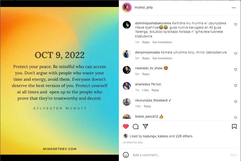 Zimwe mu nyunganizi (comment) zimaze gushyirwa ku butumwa bwa Miss Mutesi Jolly