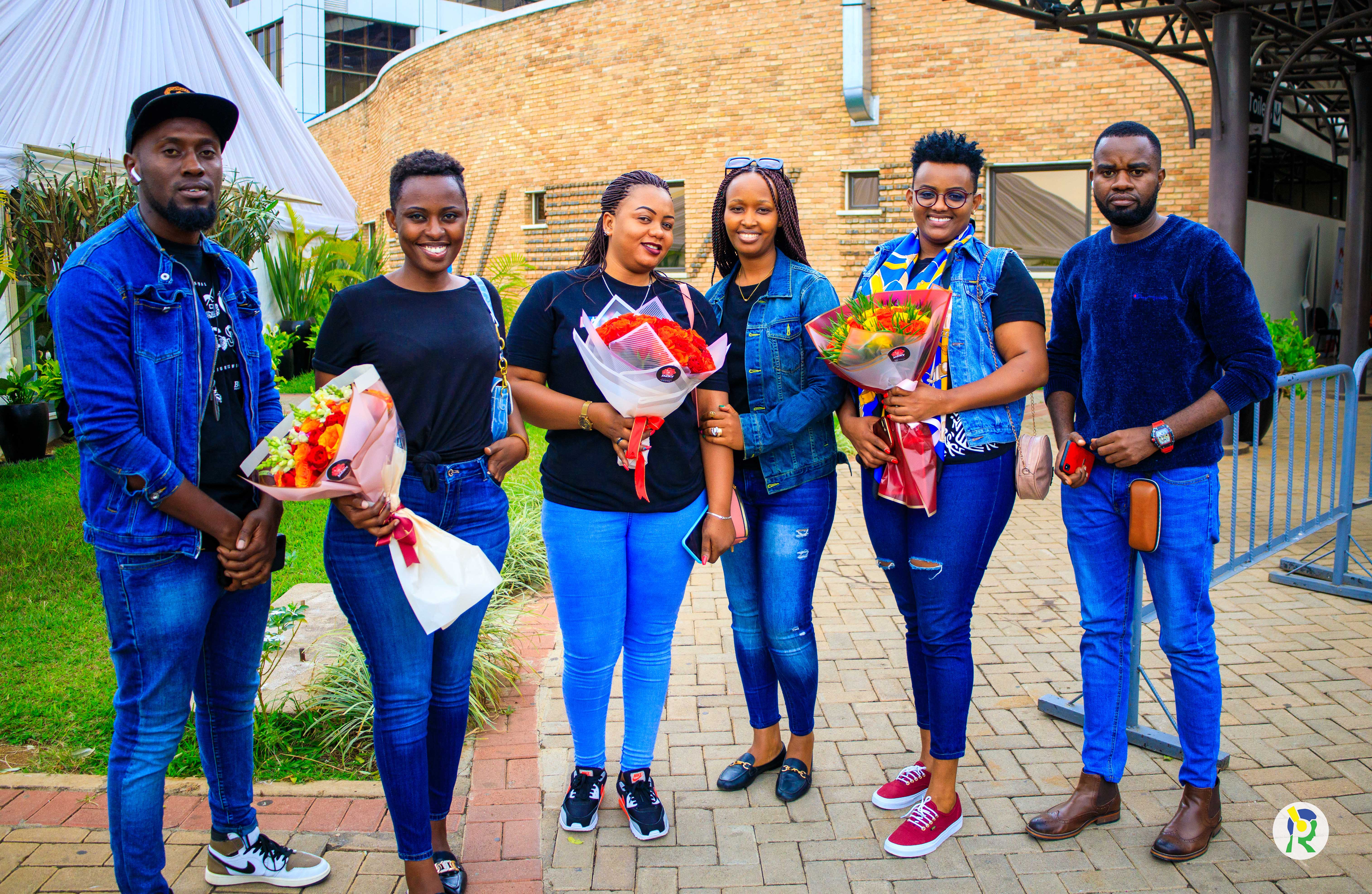 Mc Becky ubwo yari ategerejwe i Kanombe, inshuti ze zari ziteguye