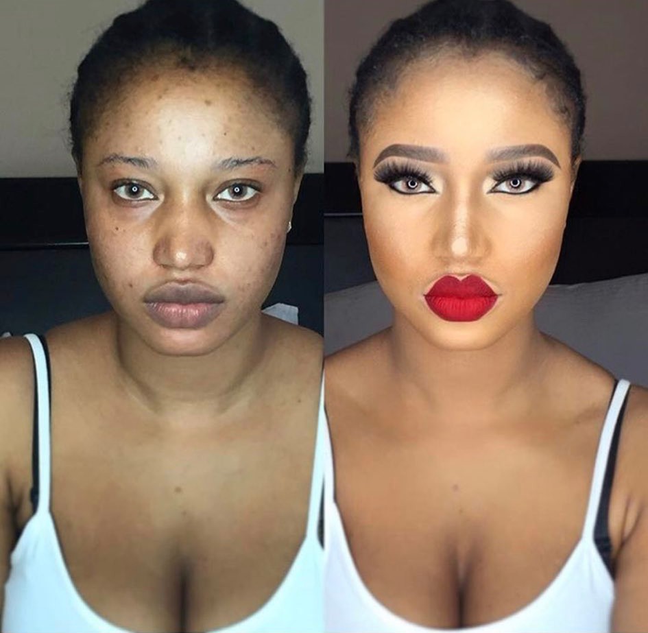 Abandi bakobwa nabo kandi bayobotse imbuga nkoranyambaga mu gutuburira ababakurikirana n'abandi babaka urukundo. Ugasanga ntafoto nimwe ashyira ku mbuga nkoranyambaga atisize ibirungo by'ubwiza. Abadasobanukiwe iyo bamubonye bagwa muri uyu mutego bibwira ko ubwiza bwe ari karemano nyamara abukesha amabara yisize.