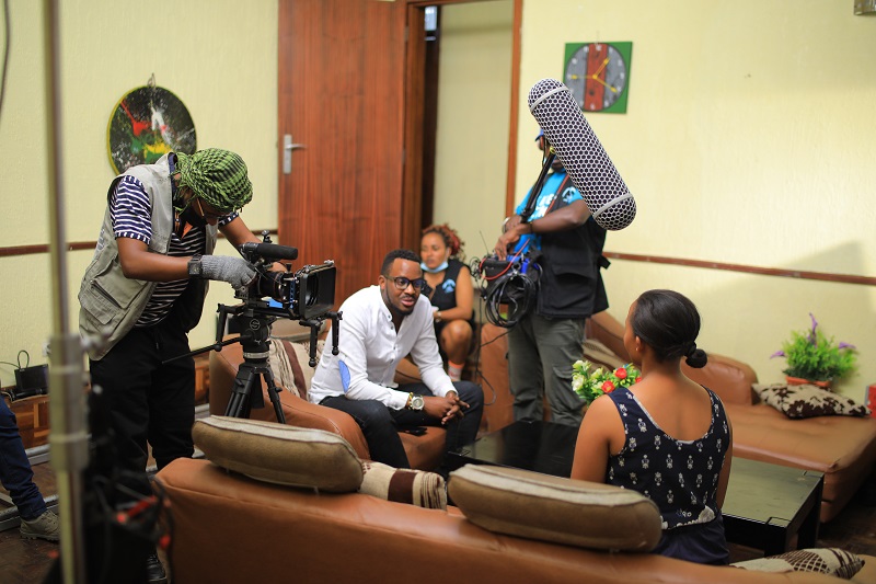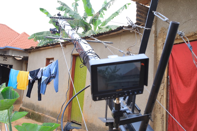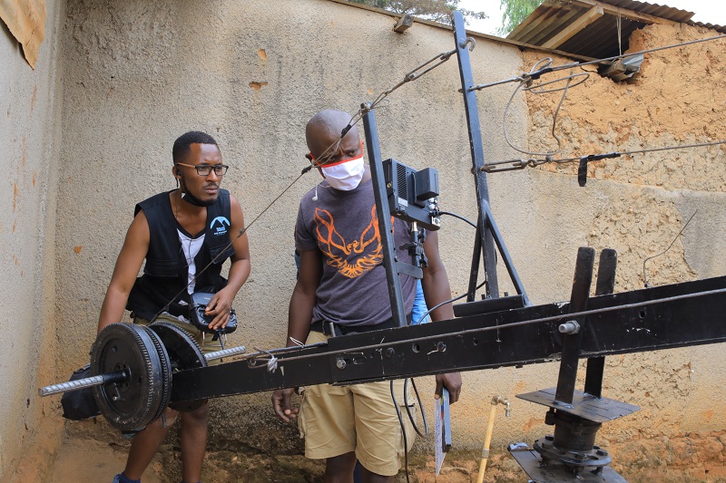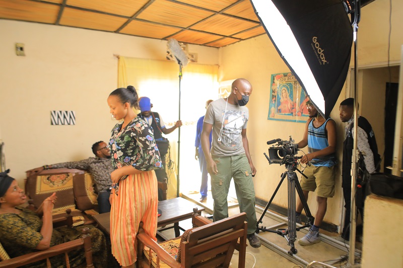 Sibomana Gilbert wafashe akanatunganya amashusho y'iyi filime