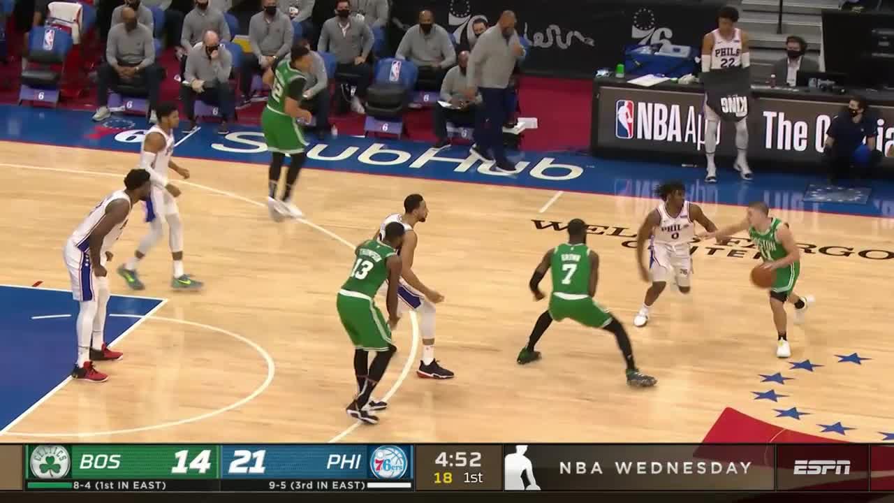 Uyu mukino igice cya mbere cyawo cyarangiye Boston Celitics ifite amanota 28 kuri 29 ya Philadelphia76ers.