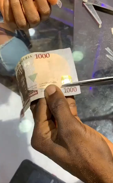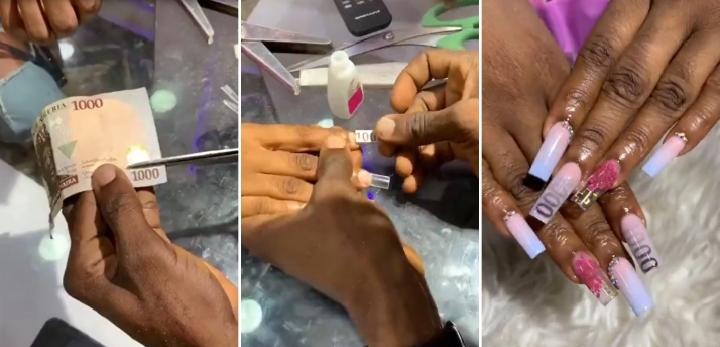 Aya mashusho yakwirakwiriye cyane ku mbuga nkoranyambaga zitandukanye, yerekana uyu mukobwa akoresheje umukasi akatagura inoti mo uduce twinshi, maze akagenda afata uduce twayo akatwomeka ku nzara agamije gutaka inzara ze nk'uko tubikesha gistreel.com.