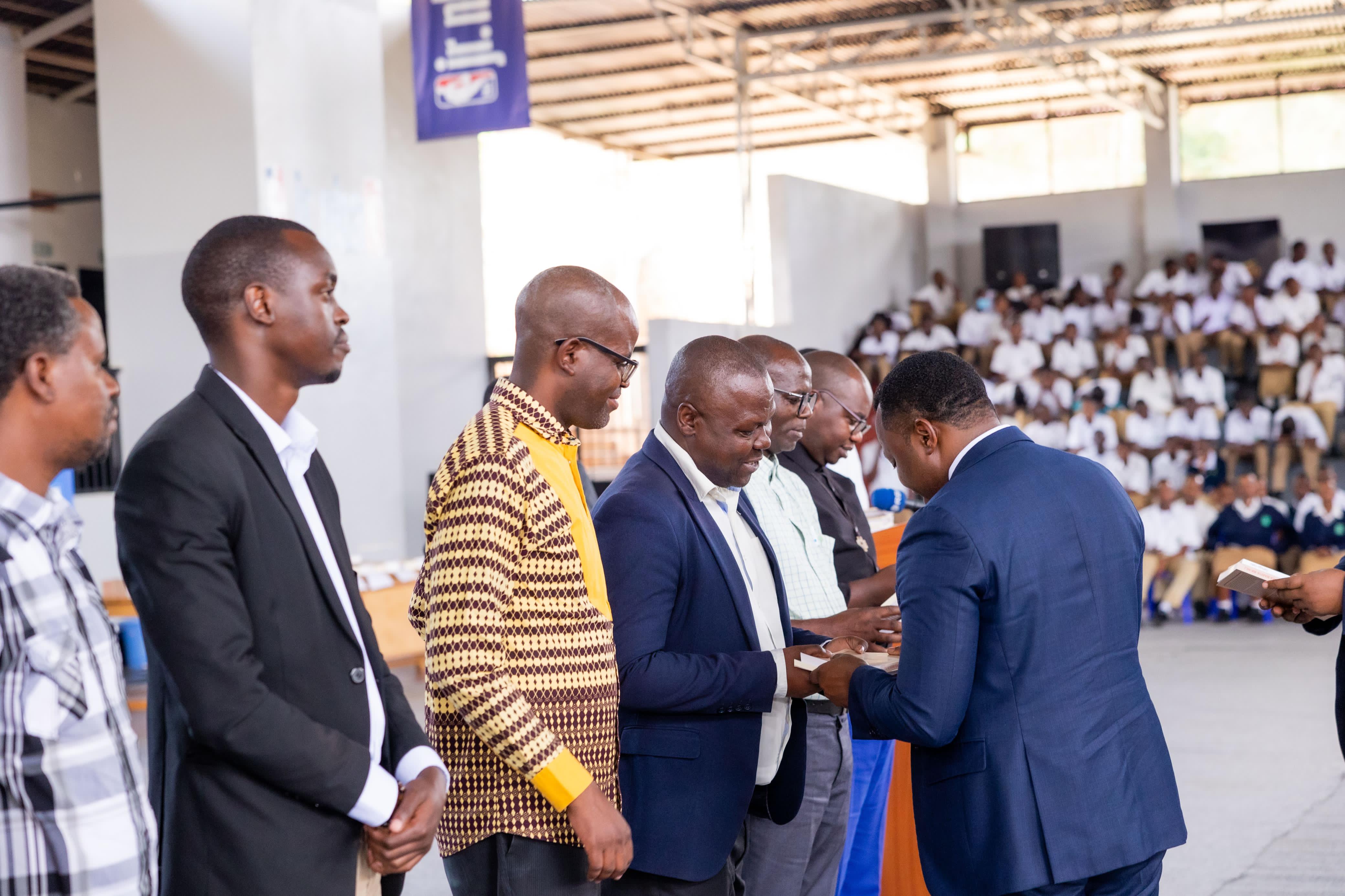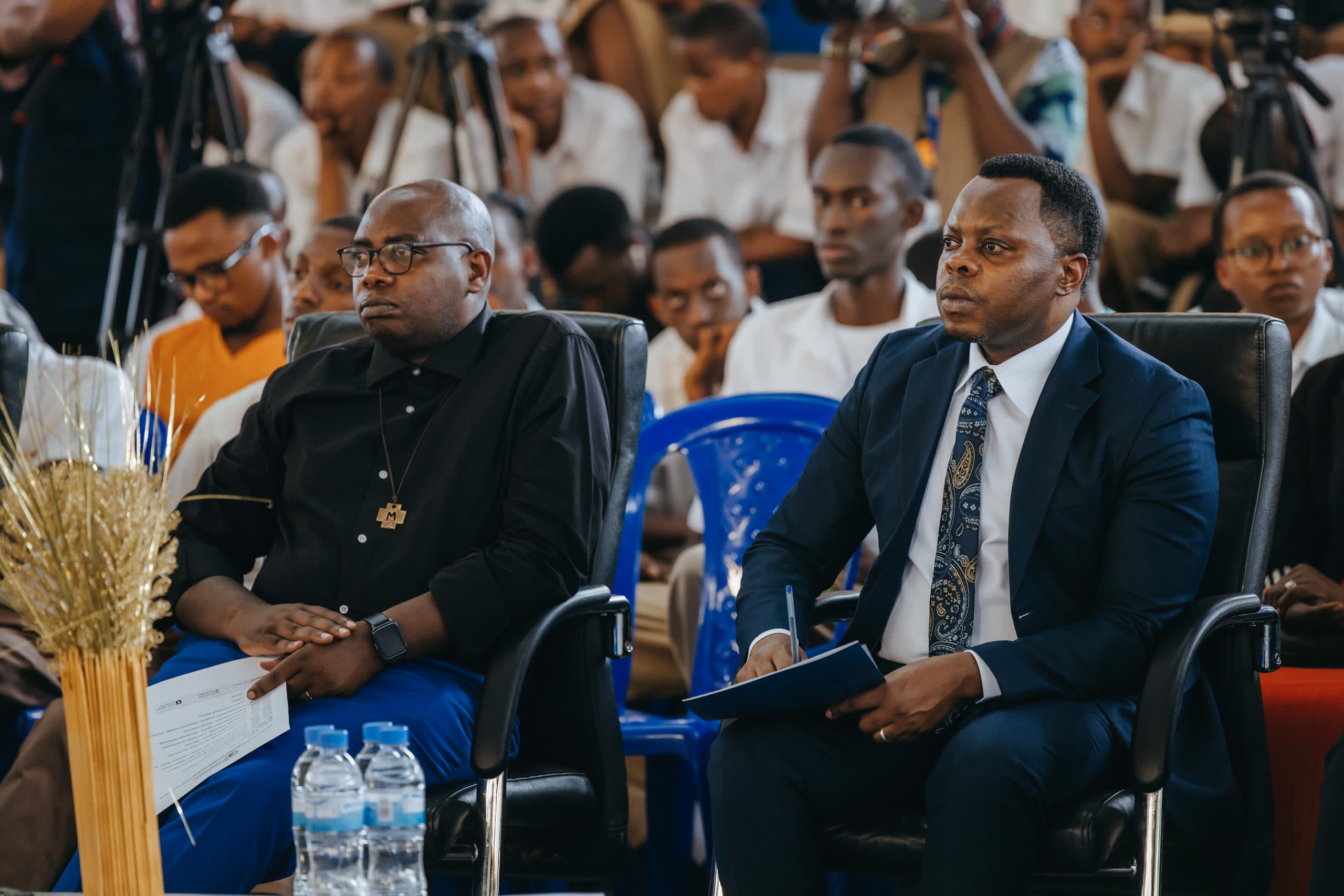 Uwa mbere uhereye iburyo, ni we muyobozi wa Lycee de Kigali yakiriye ibi birori