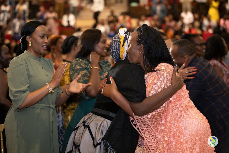 Ubwo Apotre Mignonne yahagurutse ngo abamanyurire ku mutsima w’ubugingo bamwakiranye ibyishimo byinshi, ndetse bigaragaza urukundo aba Women Foundation Ministries bamufitiye, bafatanije n’abandi batumirwa n’abashyitsi bari baje gusenga no kuramya Imana.