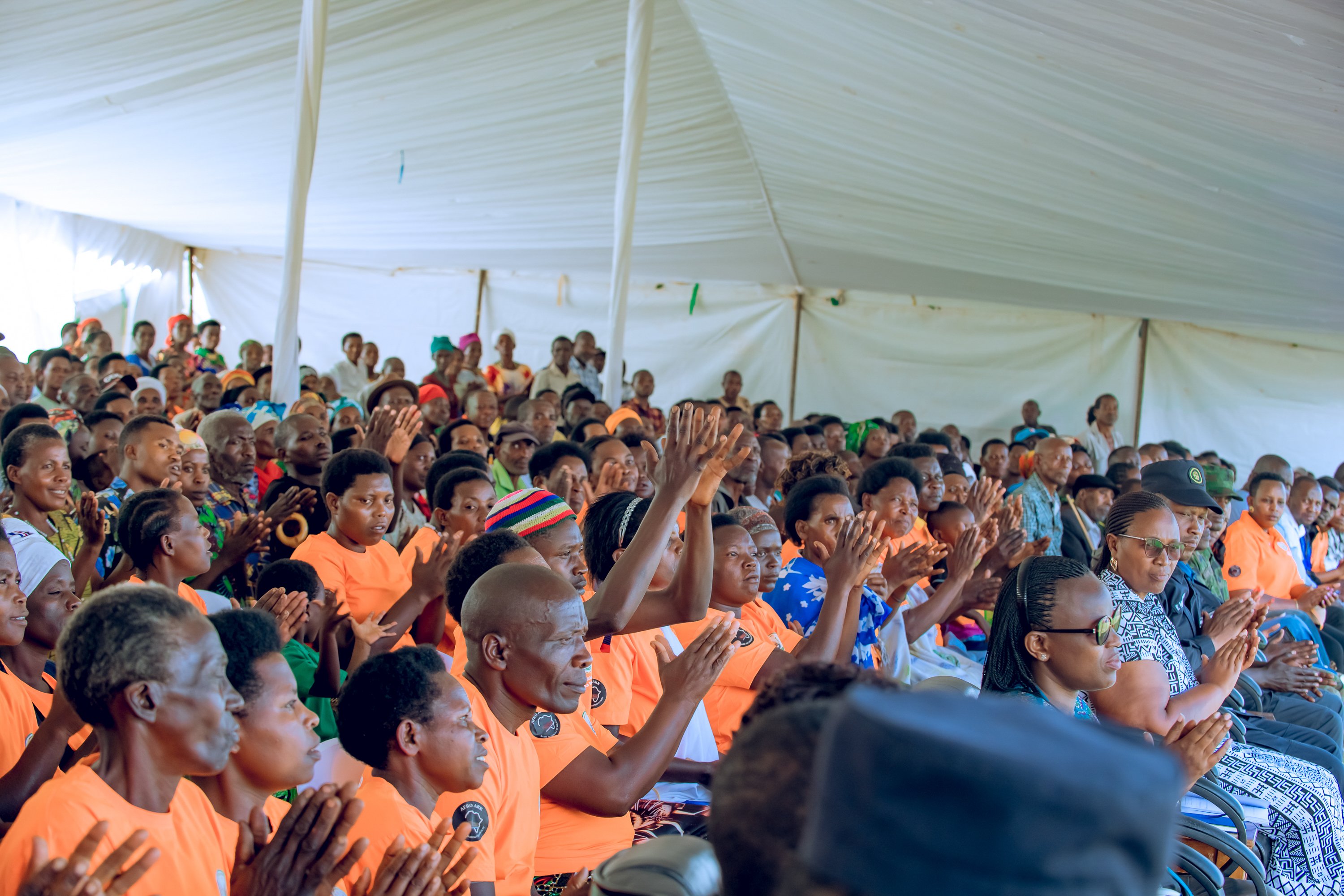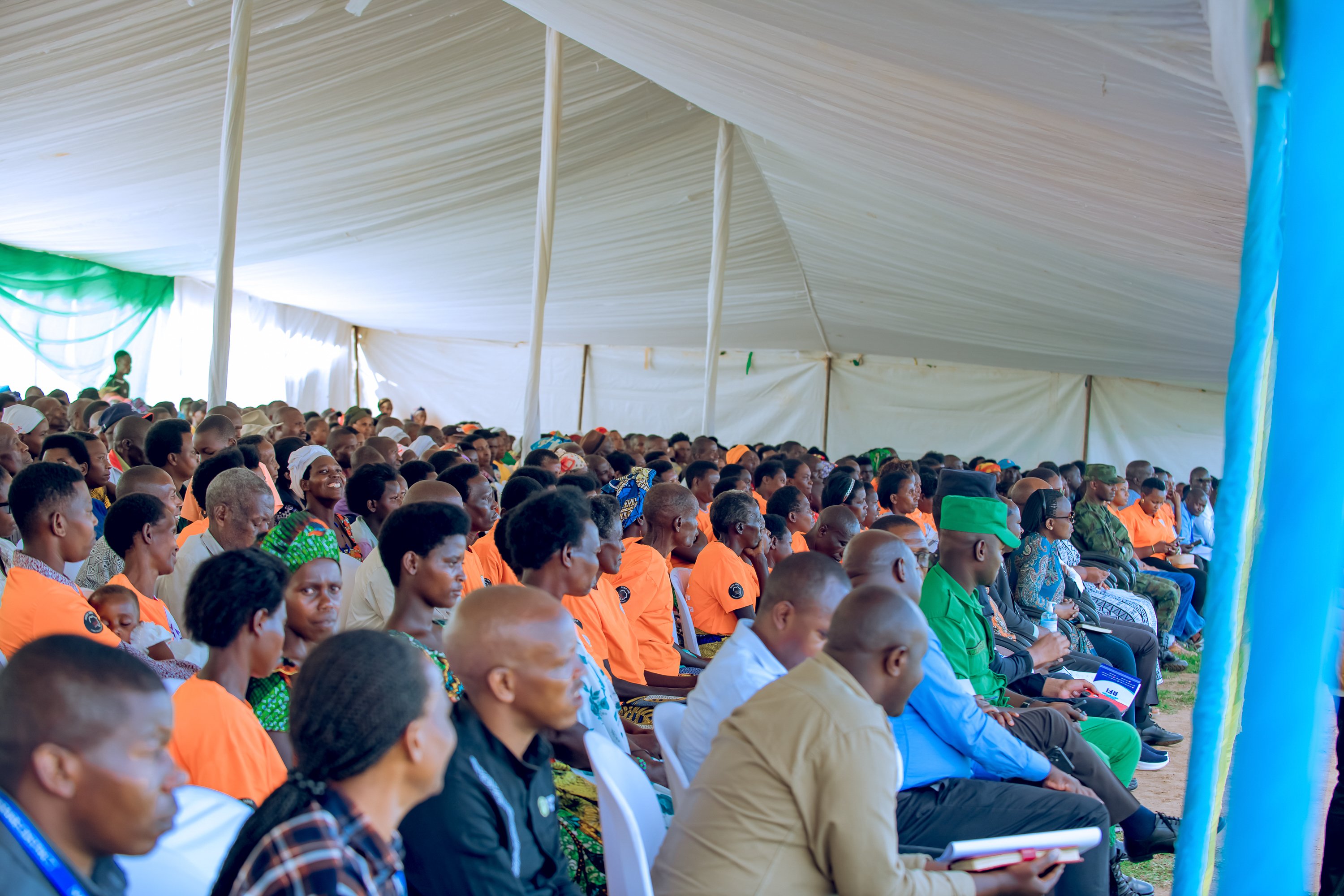 Visi Perezida w'Umutwe w'Abadepite, Beline Uwineza, ari kumwe n'Umuyobozi w'Akarere ka Nyagatare, Gasana Stephen, inzego z'umutekano n'abandi bayobozi bifatanyije n’abatuye Umurenge wa Karama mu nteko yateraniye mu Kagari ka Gikagati.