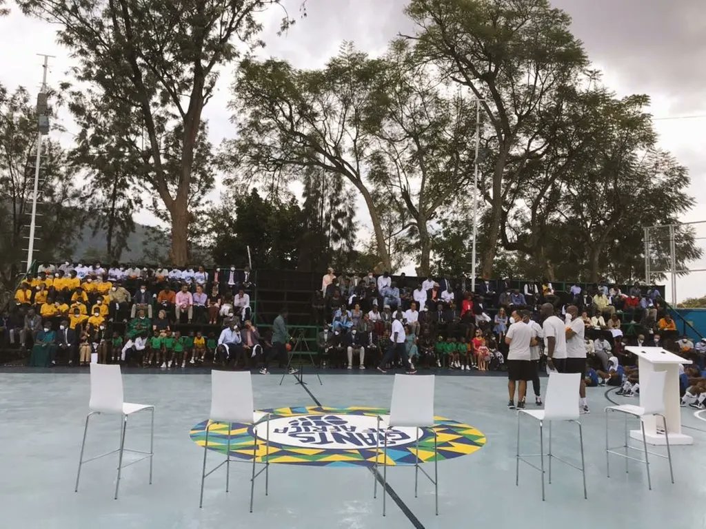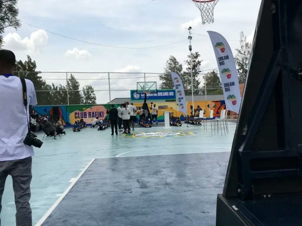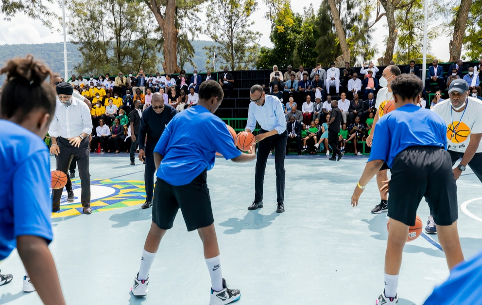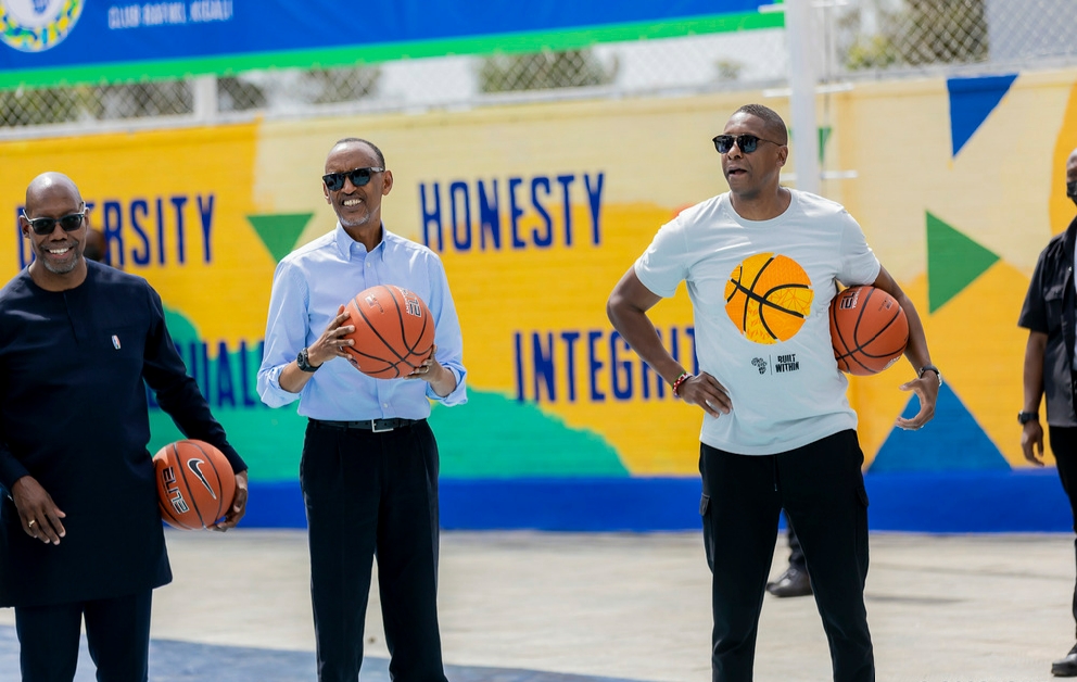 Perezida Kagame ari kumwe n'umuyobozi w'ikipe ya Toronto Raptors yo muri NBA, Masai Ujiri yafunguye iki kibuga kitezweho gukomeza gutanga umusanzu utagabanyije mu kubaka iterambere rihamye ry'umukino wa Basketball mu Rwanda.